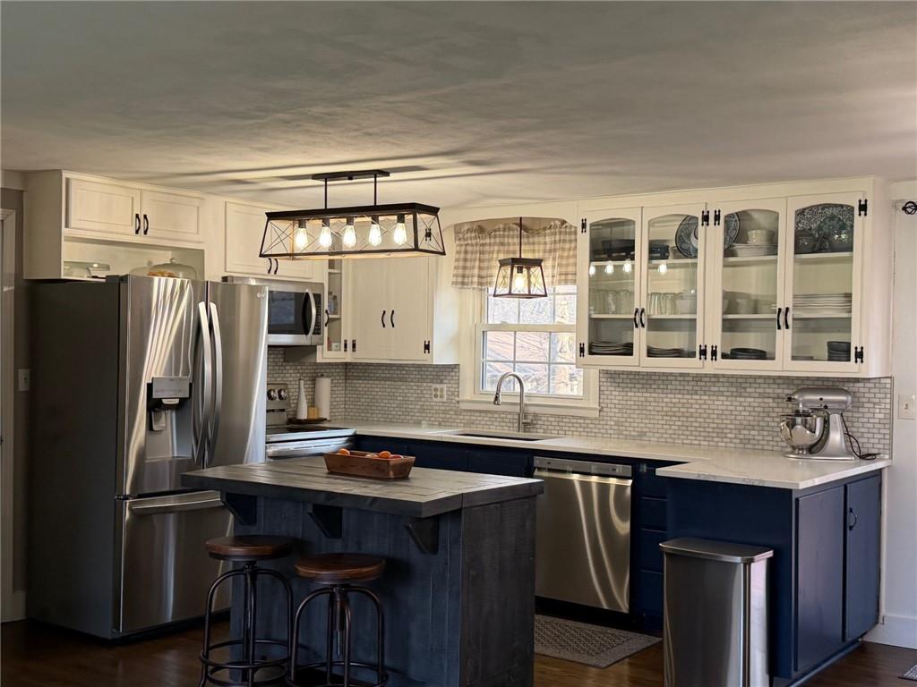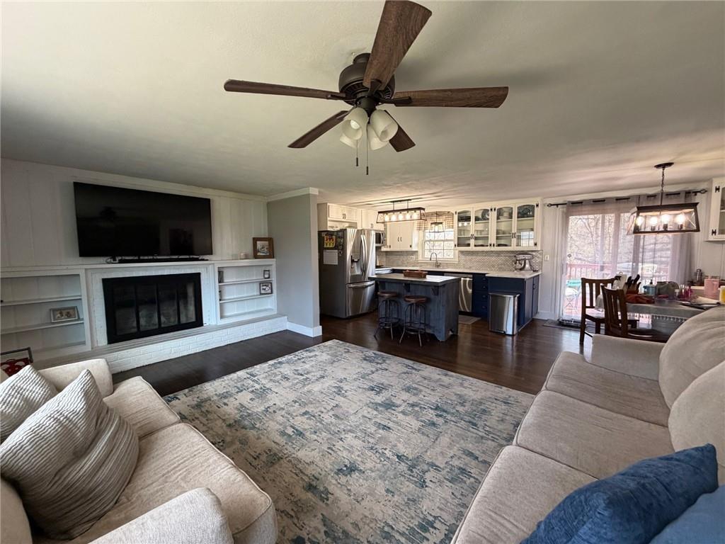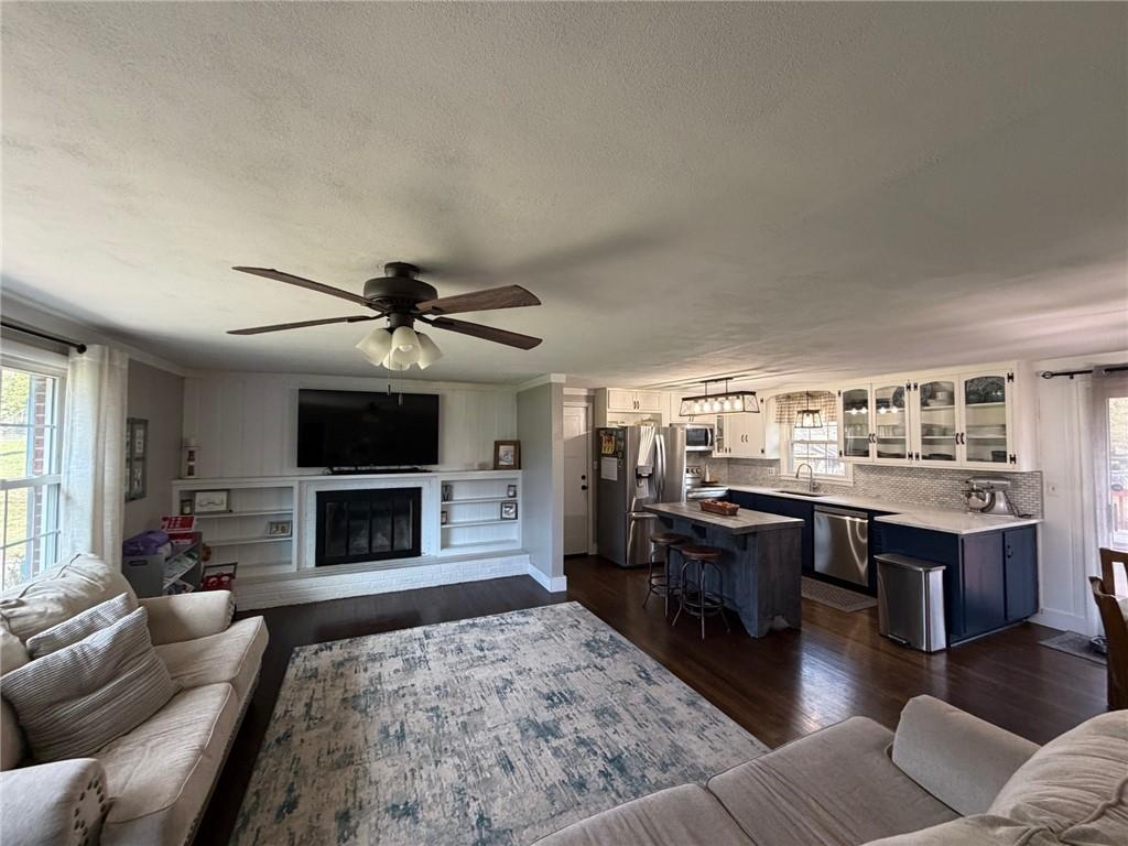 Fall in love with this updated ranch home, on a cul-de-sac lot, just short of a 1/2 acre! Great room will surprise you when you consider that TWO sofas fit easily. Built-in shelving flank fireplace and television rests easily on the top. Defined entry space with new front door and seating area for wrestling shoes "on and off little ones." Entertainer's deck with steps that connect to the paver patio and fire pit below. Large gatherings of family and friends have flowed from the inside out and under the big trees from spring thru fall. Volleyball, badminton or croquet??? There's room for all!! Island kitchen. Gorgeous solid surface countertop, undermount sink, subway tile backsplash and white cabinetry. Glass upper cabinets just add to the class of this chef's kitchen. Coffee bar with clear glass cabinet in a space to itself. Hardwoods are stunning and fill the main floor except for the bathroom. Main floor bath has been updated and looks spectacular! Walk-out recreation room currently used for in-home gym and play area. Laundry room area well lit with storage cabinets from floor to ceiling. Extra long storage closet for off season clothes or stacking storage tubs. Additional storage/furnace room contains some built-in and some portable shelving. Thermal pane vinyl windows throughout most of the home. Stone foundation. Brick and vinyl siding for low maintenance. exterior. Double wide drive and one car garage with opener. Location can't be beat for quick access to I-35 and Johnson Drive intersection. Flanked on either side of this home and anothers 1 block east, this area is getting snapped up for their location and size of lot. Neighbors have purchased and expanded several homes. This is a great place to call HOME now and in the future...potential awaits! OPEN house Friday 4/10/2026 5:00pm-7:30pm