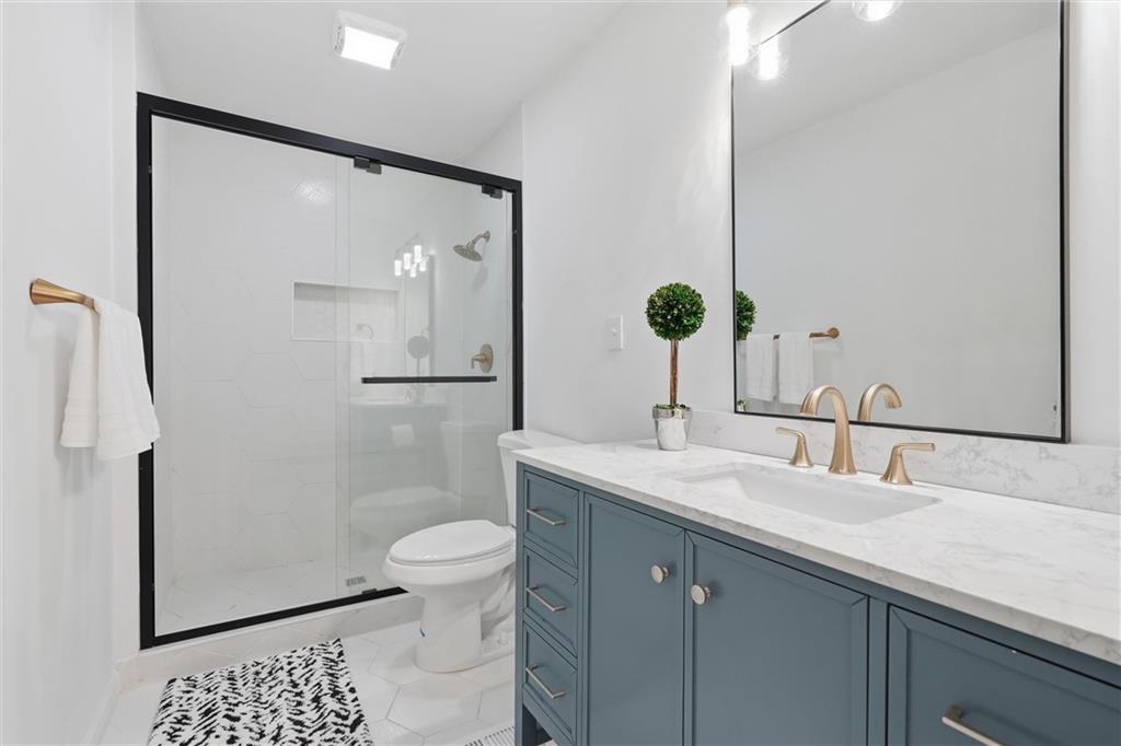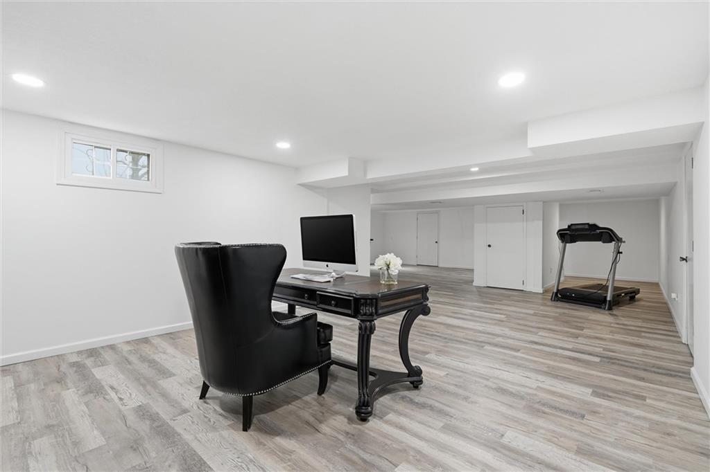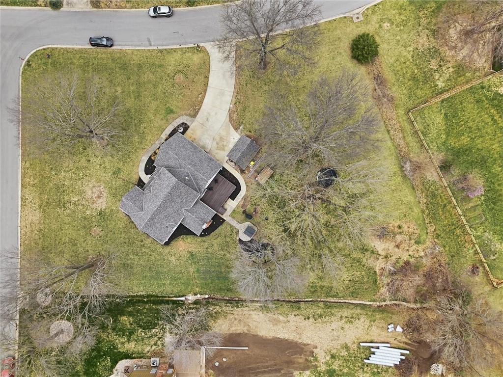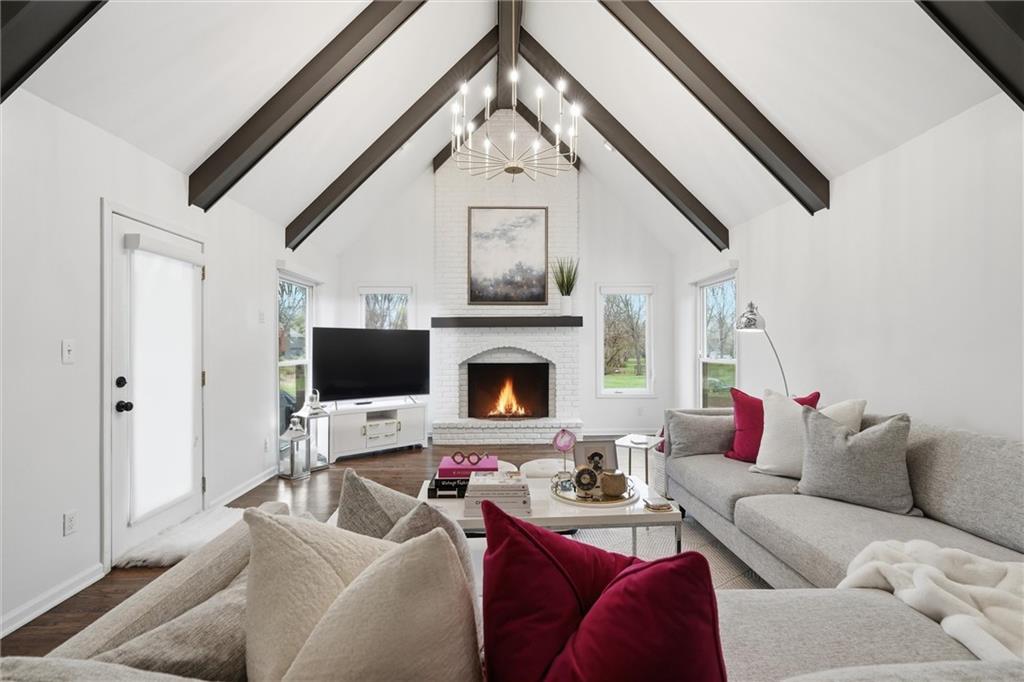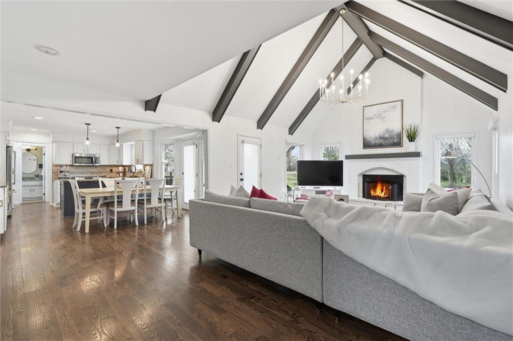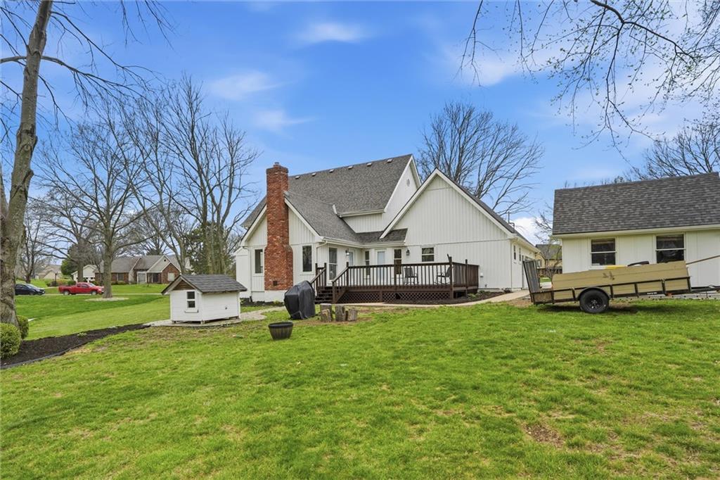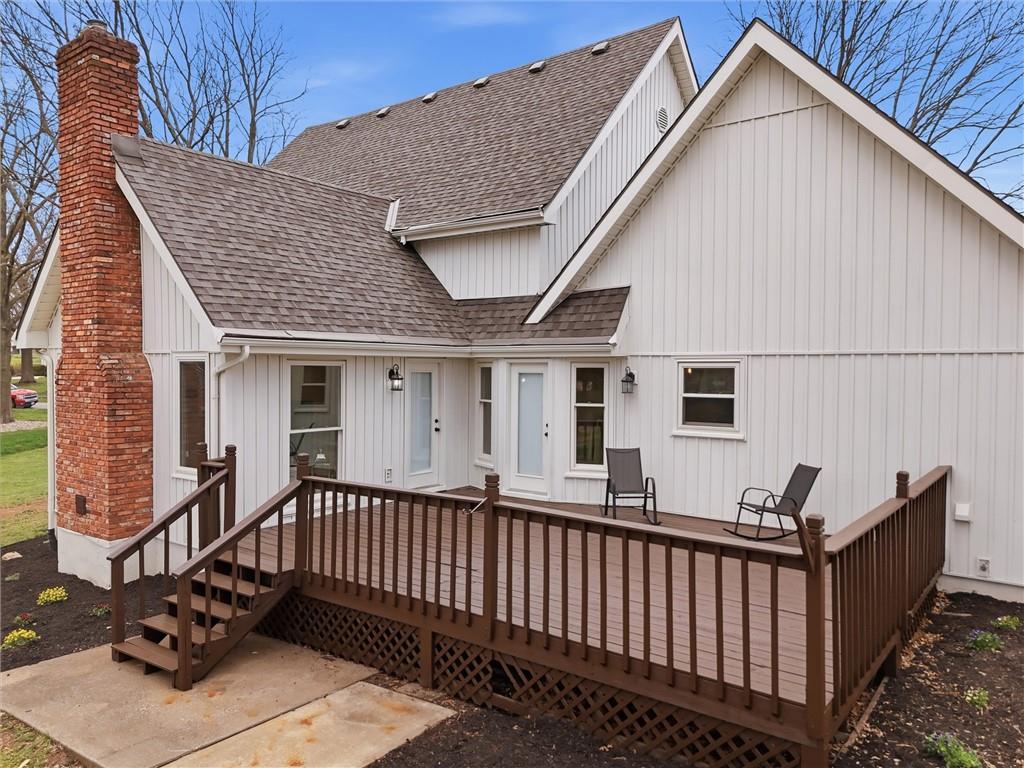 We have three words for you: Blue Valley Riding. This is an incredibly rare opportunity to get into one of the most coveted subdivisions in Johnson County - estate sized lots with a country living feel located in BVSD and just minutes from popular shopping, dining, and highway access. This beautiful and spacious 1.5 story home has it all - in addition to the perfect location, you’re getting curb appeal with fresh landscaping, updates throughout, a convenient floor plan, stunning views, hardwood floors, a sprawling primary suite, full finished basement, BRAND NEW ROOF, a third detached garage, new paint inside and out, and the list goes on. The gorgeous great room is everything you want in a living space, featuring vaulted ceilings with decorative wood beams, a floor-to-ceiling brick fireplace, plenty of natural light, and direct access to the back deck. Around the corner, the charming kitchen has an incredible amount of granite countertop space and cabinet storage with gold hardware, stainless steel appliances, tons of windows, and a cozy breakfast area that also opens to the back deck. The adjacent formal dining room has sophisticated updates including stylish wallpaper and an eye-catching chandelier, creating the perfect setting for entertaining guests or cozy family dinners. A main floor study, laundry, and half-bath make daily living easy and enjoyable, and ultimate relaxation awaits you in the private primary suite. The massive bedroom, room-sized walk-in closet and spacious, updated bath with extra-long double vanity and oversized shower are an absolute dream come true. Upstairs, three more generously sized bedrooms and a second full bath offer plenty of space for guests, family, or whatever best suits you. Outside, relax on the back deck surrounded by your oversized lot, mature trees, and the peace and beauty of this tranquil neighborhood. Welcome home!
