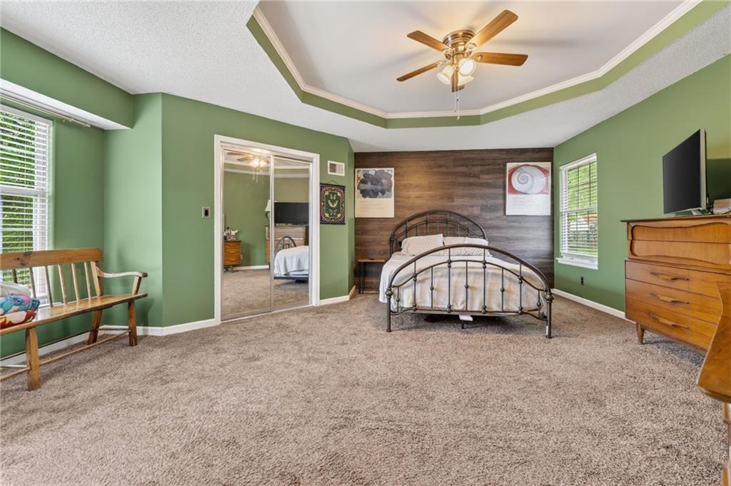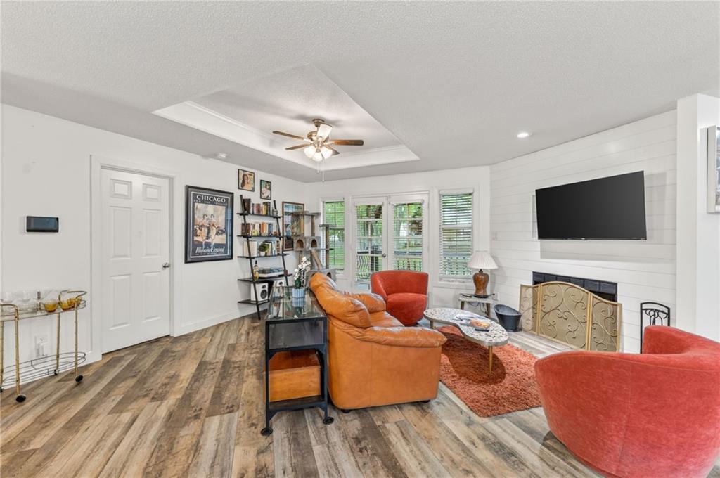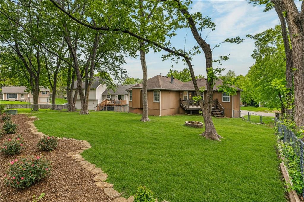 This beautifully updated property offers the perfect blend of comfort, style, and functionality. Recent improvements include a newer furnace and AC, newer water heater, whole home air purifier, gutter guards, remodeled bathrooms, updated fixtures, newer sump pump, smart garage door openers, whole home security system, new paint throughout, and recent repairs on the deck. New flooring going in the first week of May! The main living area features durable luxury vinyl plank flooring and an inviting fireplace, creating a warm and welcoming space. French doors lead to a spacious back deck, ideal for entertaining or relaxing while overlooking the fenced backyard. The kitchen is designed for both everyday living and hosting, complete with a farmhouse sink, pantry, stylish backsplash, and an open layout that flows seamlessly into the dining area. The primary suite is a true retreat with a tray ceiling, walk-in closet, and a beautifully updated private bath featuring tile finishes, double granite vanities, and a shower/tub combo. Two additional bedrooms and an updated hall bath provide plenty of space for family or guests. The finished lower level adds valuable extra living space, perfect for a second living area, home office, or rec room. Situated on a quiet cul-de-sac and within walking distance to Legacy Park, this home truly has it all.