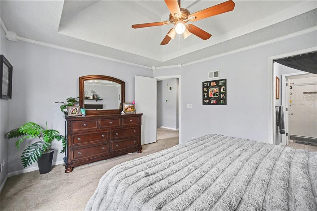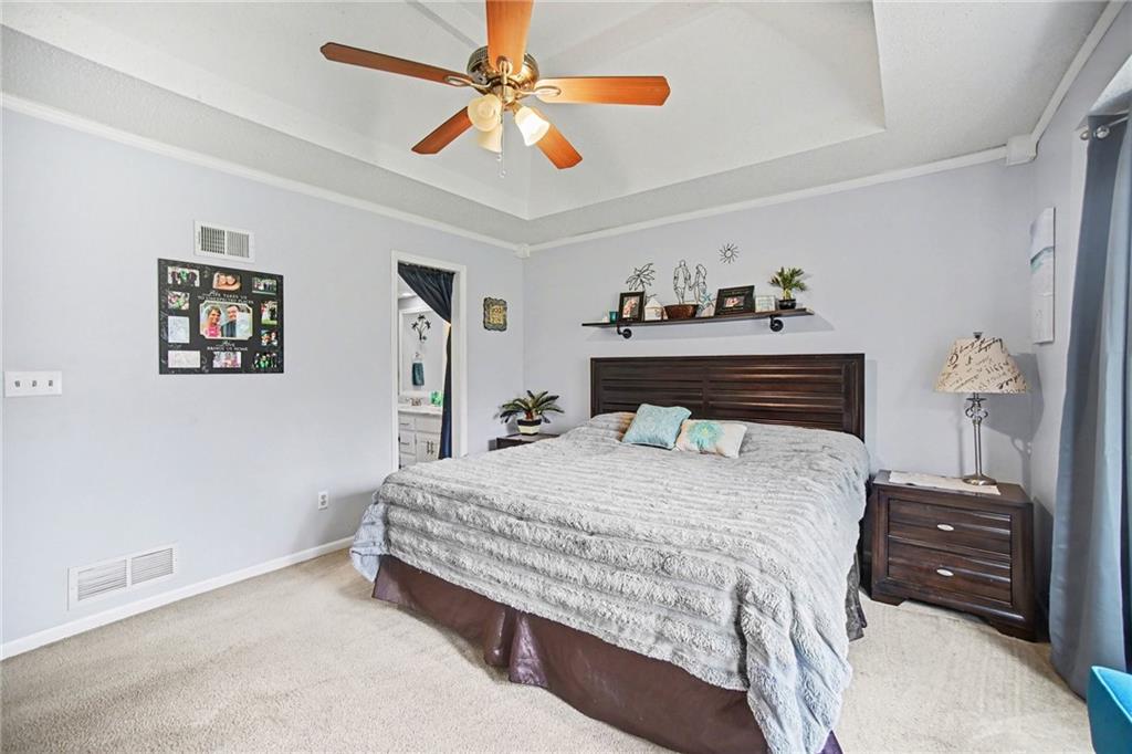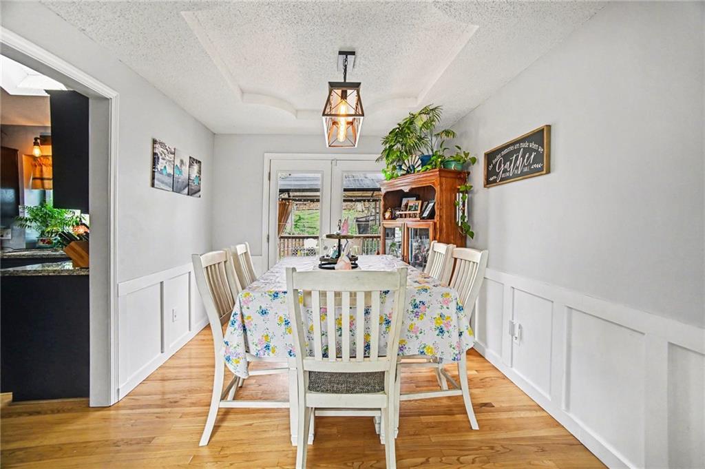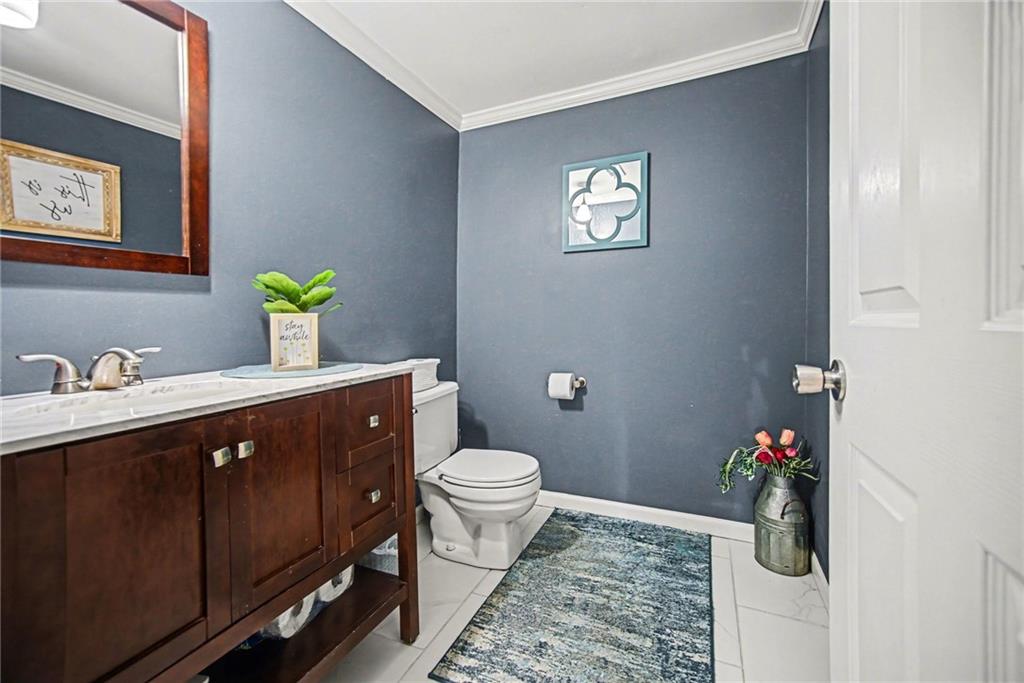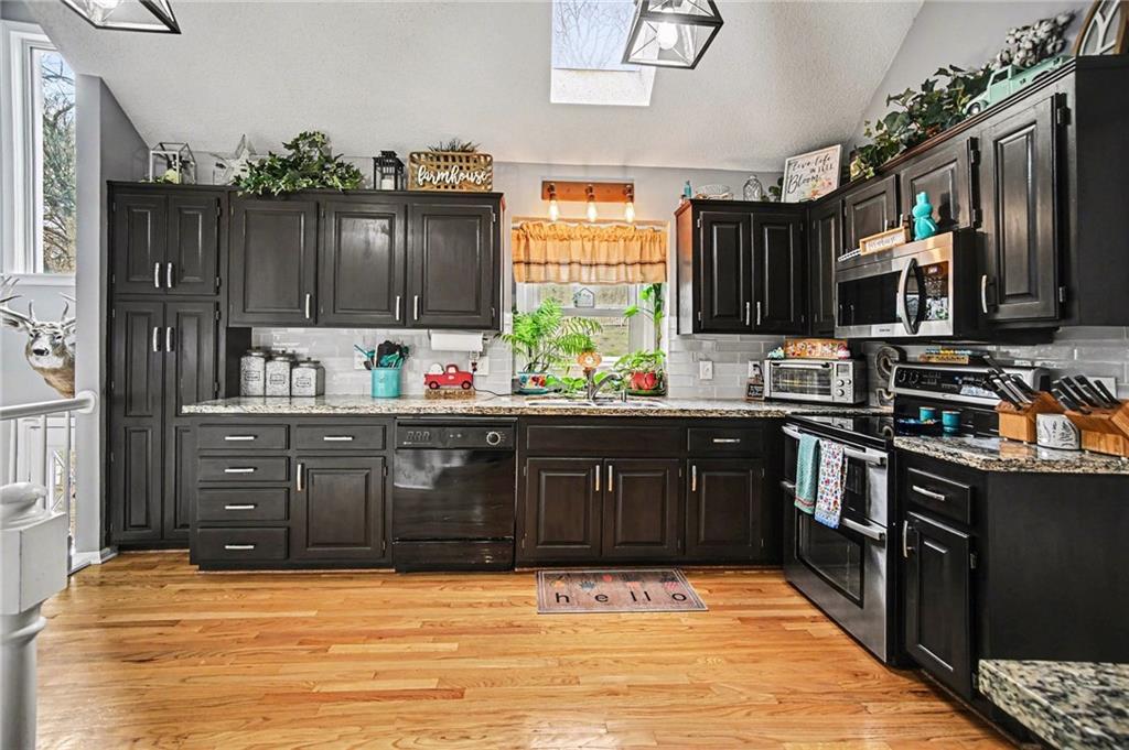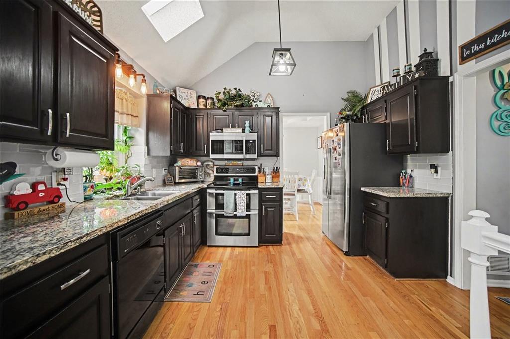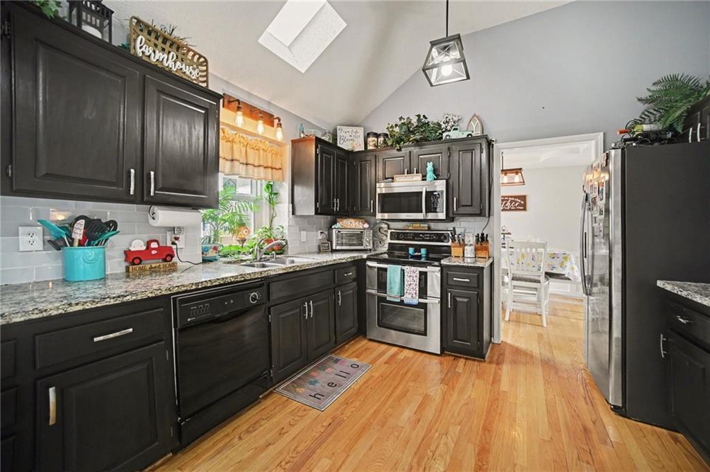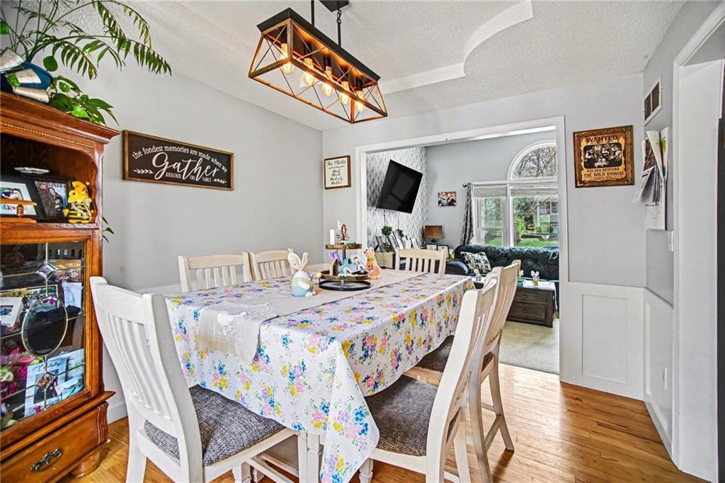 Welcome Home! Walk up the front porch through the foyer into your main living area with a cozy living room, designated dining space, and open kitchen with plenty of cabinet space. Down the stairs is a family room with a half bath that walks out to the backyard. Upstairs you will find the primary suite, two additional bedrooms, a full bath, and convenient laundry closet located in the hallway. A finished basement with recreational space, storage area, closet space, and an additional room currently being used as a 4th bedroom. Perfect for your family with a large fenced in backyard and great outdoor entertainment area. You don't want to miss this one!