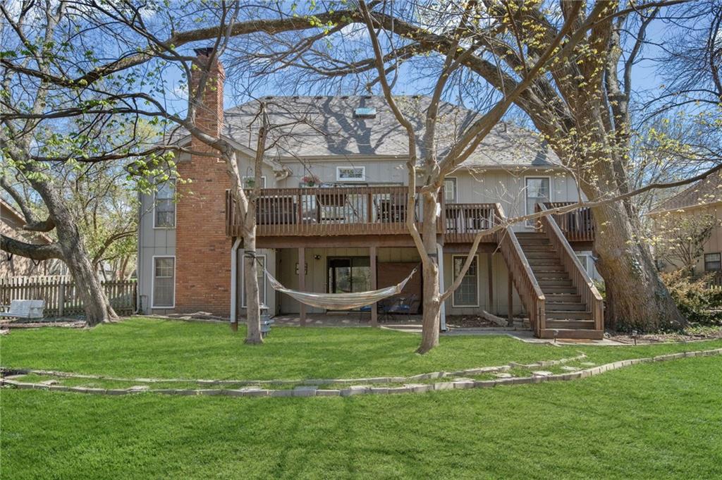 Experience refined living in this exceptional 1.5-story residence nestled in the sought-after Rolling Woods community of Blue Valley North. Boasting 5 spacious bedrooms, each with its own walk-in closet, this home offers both elegance and functionality at every turn. The beautifully appointed kitchen, with a breakfast area looking out over the back yard, features abundant cabinetry, a pantry, new countertops and flows effortlessly into a warm and inviting family room. Step outside to an expansive deck overlooking a private, picturesque backyard, perfect for upscale entertaining or quiet evenings at home. The finished walk-out lower level is an entertainer’s dream, complete with a generous recreation space, fifth bedroom, and full bath, ideal for guests or multigenerational living. Formal living and dining rooms provide timeless sophistication. Walls of tall windows bathe the home in natural light, enhancing its airy, open feel. With approximately 3,743 square feet, main-level laundry, and included appliances, this home offers both luxury and convenience.