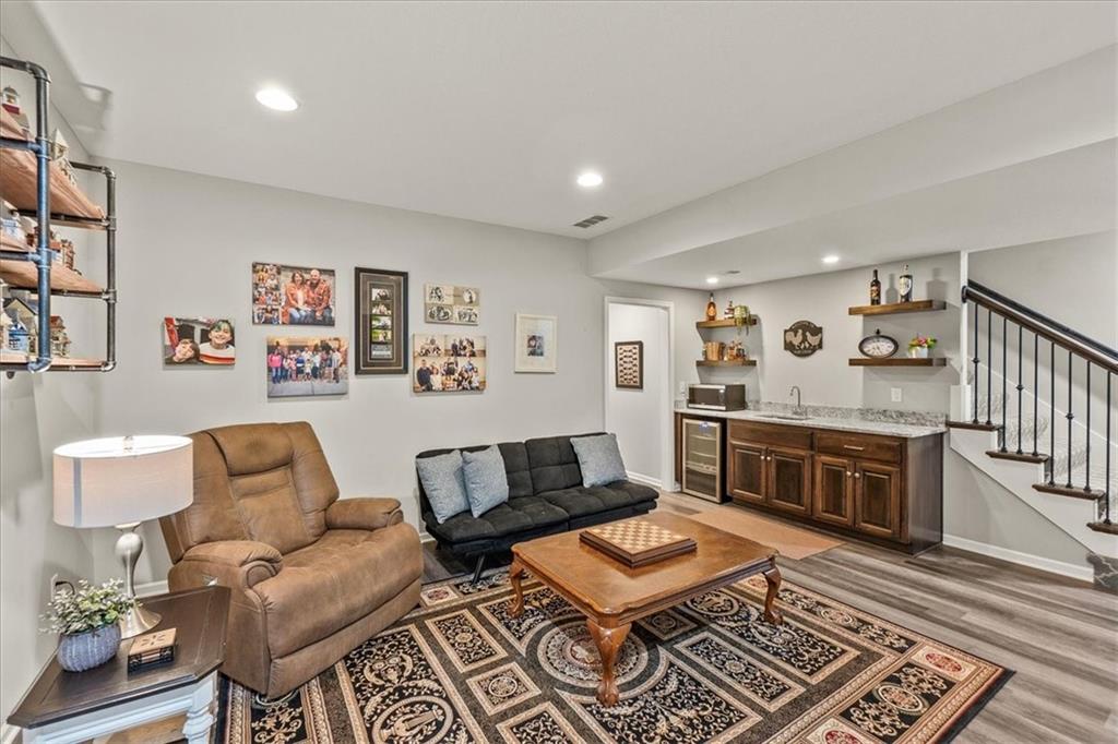This house is better than new!! Over $40k in upgrades! Seabrook II plan, builder is Gianni Homes. Kitchen has granite counters, custom cabinets, & walk-in pantry. Stainless Steel Appliance, 5 Burner Gas Stove, convection oven with bluetooth! Gorgeous LVP Flooring that's scratch resistant. Great room is so bright and open with floor to ceiling fireplace & wood beams added to the ceiling. Custom blinds in upstairs rooms, Laundry in off the primary bedroom that walks through to the custom-built closet. The primary bathroom has a zero-entry huge shower with granite countertops. Lower level feels even more spacious with it's HIGH Ceilings, a wet bar, a 2nd family room, 2 more bedrooms, and a 3rd FULL bath! There are 2 large storage areas as well, perfect for a craft room or a home gym!! Fully fenced yard with a covered patio. Walking trails right behind the house, sprinkler system up front. The amenities include a community POOL, Pickleball Court, Sport Court, a Putting Green, TRAILS, a Playground, Walking Trails & more!! There is a brand new school, minutes away! This AMAZINGLY well-taken care of house is ready for you!!!! Hurry and come take a look, bc this won't last long as we priced it TO SELL!!!