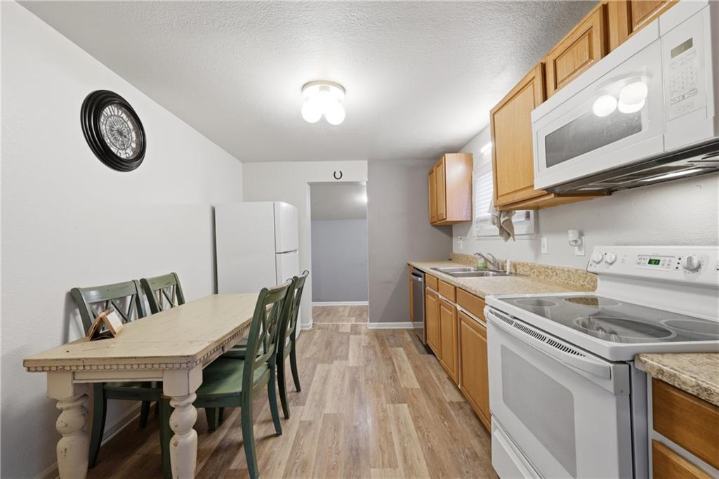 Don't miss out on this opportunity! Come and see this very well-maintained and affordable two bedroom and one bathroom home with a brand-new metal roof and doors. Everything you need is located on one level. You can feel at ease, as this home has just had foundation work completed and the warranty is transferable. This home is in a great location as it is just a few blocks from school and the pool. As you enter the front door, you walk into the cozy living room. To your left is one of the bedrooms and across the living room is the second bedroom. The bathroom is also on the left side of this home. The living room opens up to an open kitchen/dinning room space where you can enjoy a meal with your friends and family. On the other side of the kitchen, is the laundry room/mudroom, which, conveniently, has another entrance to the outside. There is a spacious, partially-fenced back yard as well as a storage shed. In the backyard, you can enjoy an open view and have plenty of space. Buyer and buyer's agent to verify all information and measurements. Photos have been, professionally, enhanced.