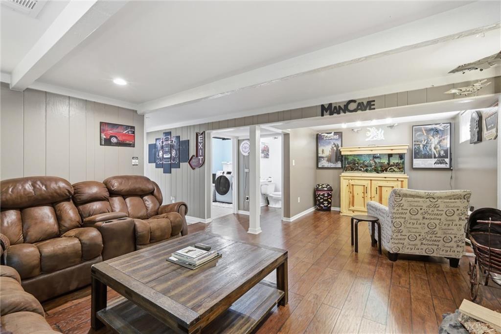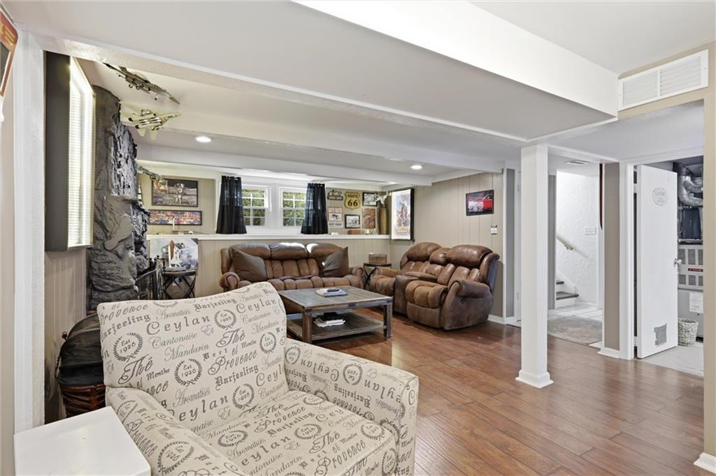 Excellent updated property ready for its new owner! Featuring newer luxury vinyl plank flooring throughout, this home offers a spacious and inviting living room along with a separate dining area—perfect for everyday living and entertaining. The kitchen provides ample cabinet and counter space, making it both functional and practical. The primary suite includes a private en-suite bathroom with a tub/shower combination. Don’t miss the finished basement, offering additional versatile space ideal for a media room, home office, or play area. Step outside to a fully fenced backyard complete with a patio-perfect for relaxing or hosting. Large custom storage shed. Garage has a great workbench space. Additional updates include a newer roof and AC for added peace of mind. Schedule your showing today!