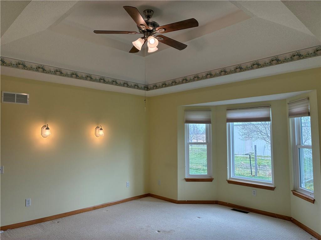 Dream property! Exceptional, spacious custom-built 2,034 sq ft ranch with 5 acre estate lot in desirable Grain Valley school district. 3 bedroom, 3.5 bathroom, stunning entryway, sitting room/formal living room, open floor plan with see-through gas fireplace, tons of windows and light with custom blinds. Large open kitchen with eat-in space, also separate dining room, built-in desk, large pantry. Private master bedroom, master bathroom with dual sinks, vanity, shower and hot tub. Screened in back porch off the living room. 3 car garage with full bath access. 30x50 outbuilding with sliding doors on three sides, insulated with concrete floors and power, lean-to on pasture side. Fencing around house and separate fencing around open pasture. Tons of mature plants and flowers. You don't want to miss this one!