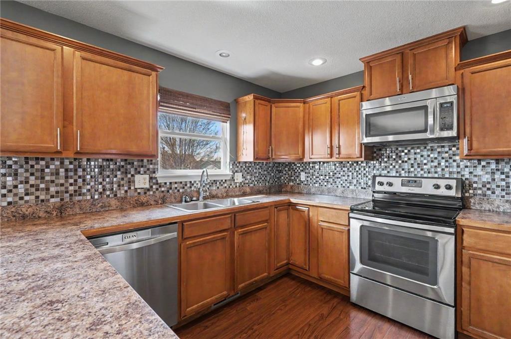 Welcome home to the space, comfort, and lifestyle you’ve been waiting for—ideally located just one block from the grade school, making daily routines effortless and family life even more enjoyable. From the moment you step inside, you’ll notice how light and bright this home feels, thanks to brand new windows in both the living room and family room that fill the space with natural light. The spacious living room offers a cozy woodburning fireplace—perfect for relaxing evenings and gathering with family and friends. The dining area flows seamlessly into the kitchen, creating an easy, open feel for everyday living and entertaining. A patio door leads directly to the deck, extending your living space outdoors and making it ideal for morning coffee, summer dinners, or simply unwinding at the end of the day. The primary suite is a true retreat, featuring a beautiful coffered ceiling, a generous walk-in closet, and a private full bath with double vanity for added convenience. Two additional bedrooms and a full hall bath provide plenty of space for a growing family, guests, or flexible use. The lower level offers even more room to spread out with a welcoming family room, a full bathroom, and a versatile bonus space perfect for a home office, craft room, or exercise area. The walkout basement leads directly to the backyard, adding both function and ease of access. Step outside and fall in love with the large, private backyard—fully fenced with wood privacy fencing and thoughtfully designed for both relaxation and enjoyment. You’ll find a storage shed, fruit trees, and a charming patio area where grapevines create a peaceful, picturesque setting that feels like your own private escape. Homes that offer this combination of space, location, and lifestyle do not come along often. If you’ve been looking for the perfect place to grow, gather, and truly feel at home—this is it. Don’t wait to see it.