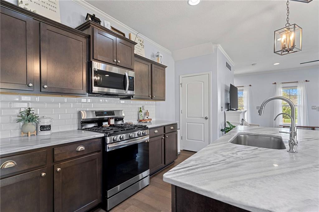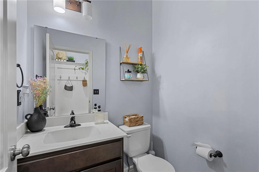 Welcome to this beautifully updated farmhouse-style two-story home, situated on a spacious lot with a charming front porch, rear-entry attached two-car garage, and a driveway accommodating up to six vehicles. Recent improvements include a new covered patio and updated stairs. The open main level offers fresh paint, abundant natural light, crown molding, and a well-appointed kitchen featuring granite countertops, an island, and a walk-in pantry. The second floor includes three bedrooms, two full baths, and a convenient laundry room. The primary suite features a double vanity and a large walk-in closet. Located at the end of a quiet street in a newer neighborhood with excellent highway access, this home is truly a must-see.