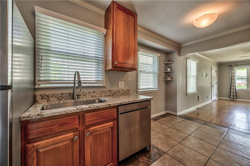 Charming and move-in ready in desirable Roeland Park! This 2-bedroom, 1-bath home offers great natural light throughout and a thoughtfully updated interior. Enjoy fresh exterior and interior paint, newer fixtures, and recent electrical updates that add comfort and peace of mind. The kitchen has been remodeled in the last few years and features newer appliances along with heated floors! The finished lower level adds valuable living space, complete with a bar area and a non-conforming room - ideal for a home office, guest space or workout room. Outside, you'll love the new concrete driveway (2024), updated landscaping, and a cozy fenced-in backyard with planting beds and established hostas. A bright sunroom connects seamlessly to the deck, creating an ideal indoor-outdoor flow between the living room and the single-car garage. With its great location, thoughtful updates and inviting charm, this home is a perfect opportunity at a great price point.