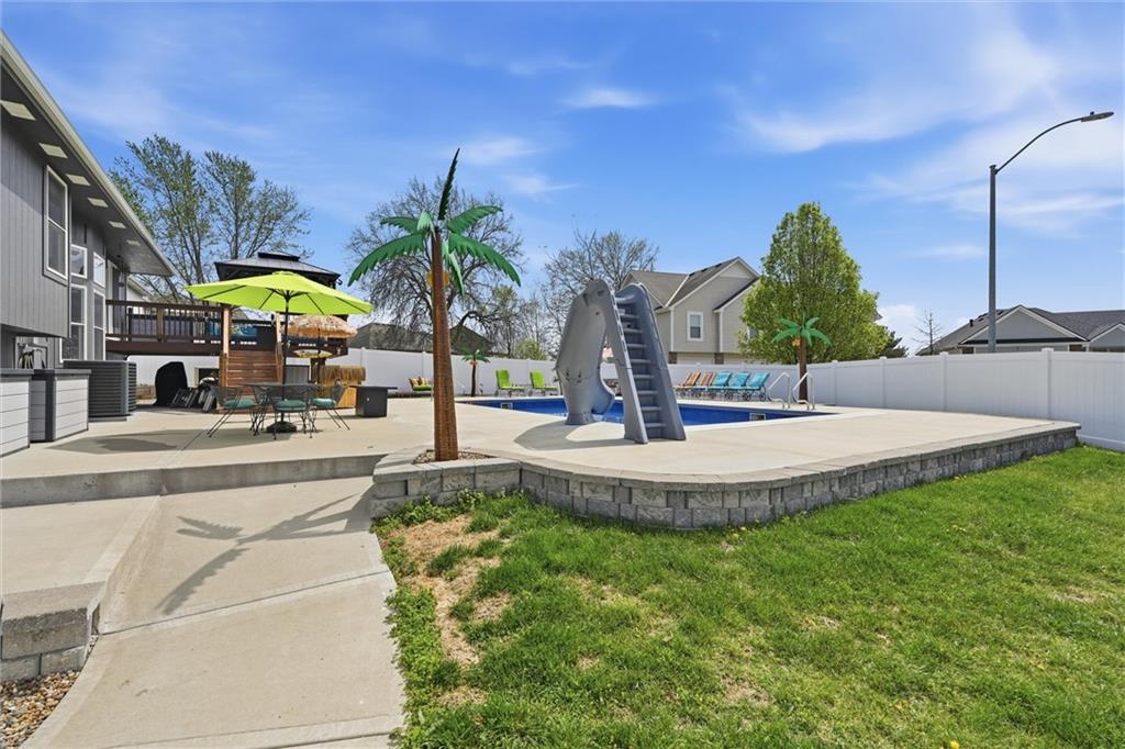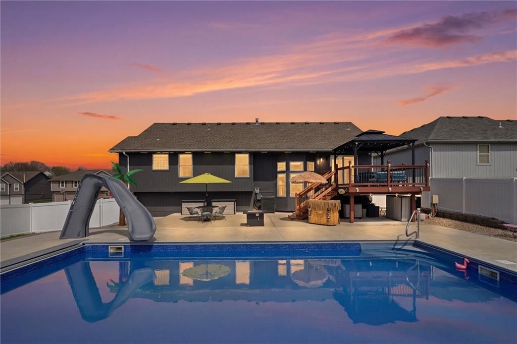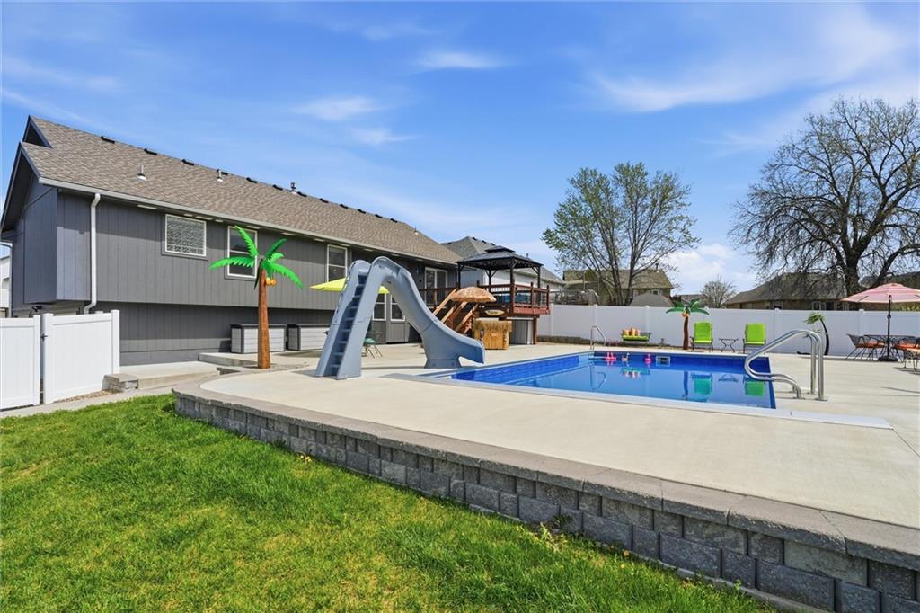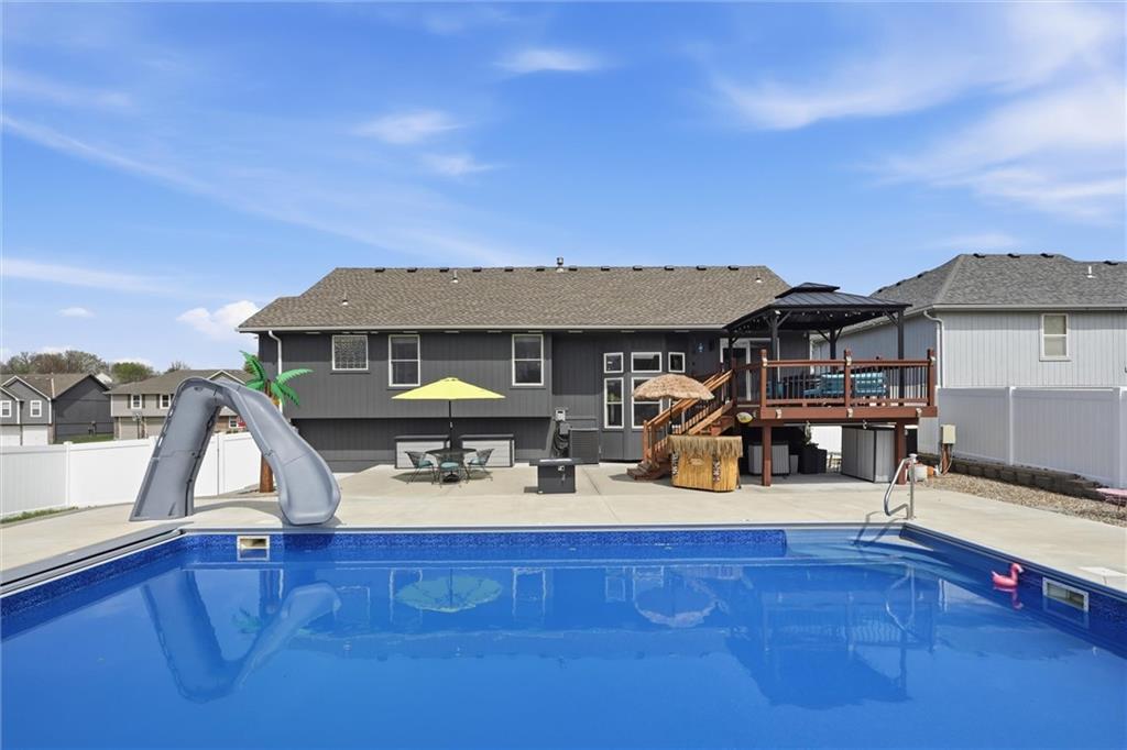 Beachy summer vibes and palm trees coming your way! Want to step out to a vacation in your backyard? This modern and very unique home is for YOU! Enormous heated AND chilled 34x 18 swimming pool with a Typhoon water slide, 2 deck jets, color changing interior pool lights, electric auto- cover, and additional "cool treated" concrete decking for laying out to enjoy the sun. The deep end is 6 feet for sliding fun and the shallow end is 3 feet for floating with your favorite drink in your had to soak up the sun. ALL major ticket items have been taken care of: new HVAC 1-2023, new roof 4-2022 with Timberline Armor Shield Class 4 impact resistant GAF shingles, new white vinyl privacy fence 12-2025, new swimming pool by Swim Things installed summer/ early fall 2023, all BRAND NEW KitchenAid stainless steel appliances 11-2025 and 1-2026, all NEW CoreTec Plus commercial grade LVP flooring installed 10-2024, and the exterior is currently in the process of being caulked and painted with Sherwin Williams HGTV Everlast premium paint (to be completed prior to closing). This unique and modern home has a floor plan you've probably NEVER seen; a DOUBLE side to side split with a finished basement bedroom with a full private bathroom for family or guests. The unfinished sub-basement provides an abundance of storage and is even stubbed for a bathroom. Need even more storage? The sizeable 3 car garage is perfect! This home has been remodeled top to bottom and I promise you won't be disappointed! This one of a kind modern floorplan is fresh, fun, and is a delight for modern living. Nothing to do here but move in so come BUY today! Offered for sale by owner/ Broker.