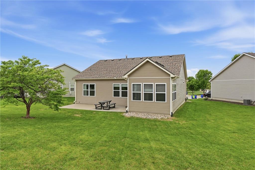 Looking for true main-floor living? This ranch-style home checks all the boxes. Built in 2012 on a quiet cul-de-sac, this home offers the functionality of newer construction with thoughtful updates that align with today’s style. Enjoy open-concept living with a spacious living room that flows seamlessly into a beautifully updated kitchen featuring a large center island, granite countertops, stainless steel appliances, and a modern backsplash—perfect for both everyday living and entertaining. A standout feature is the vaulted-ceiling bonus room, filled with natural light surrounded by expansive windows. This sunroom offers the perfect space to relax and enjoy the view into the community walking path and green space right off the back patio. The primary suite is a true retreat with a large en-suite bathroom, complete with double vanities, a tiled walk-in shower, and a spacious walk-in closet. Two additional bedrooms, a full bathroom, and a conveniently located laundry room complete the main level. The basement provides storage or the opportunity to finish in order to double the living space. Step outside to enjoy summer evenings on the back patio. Don’t miss this one—schedule your showing today!