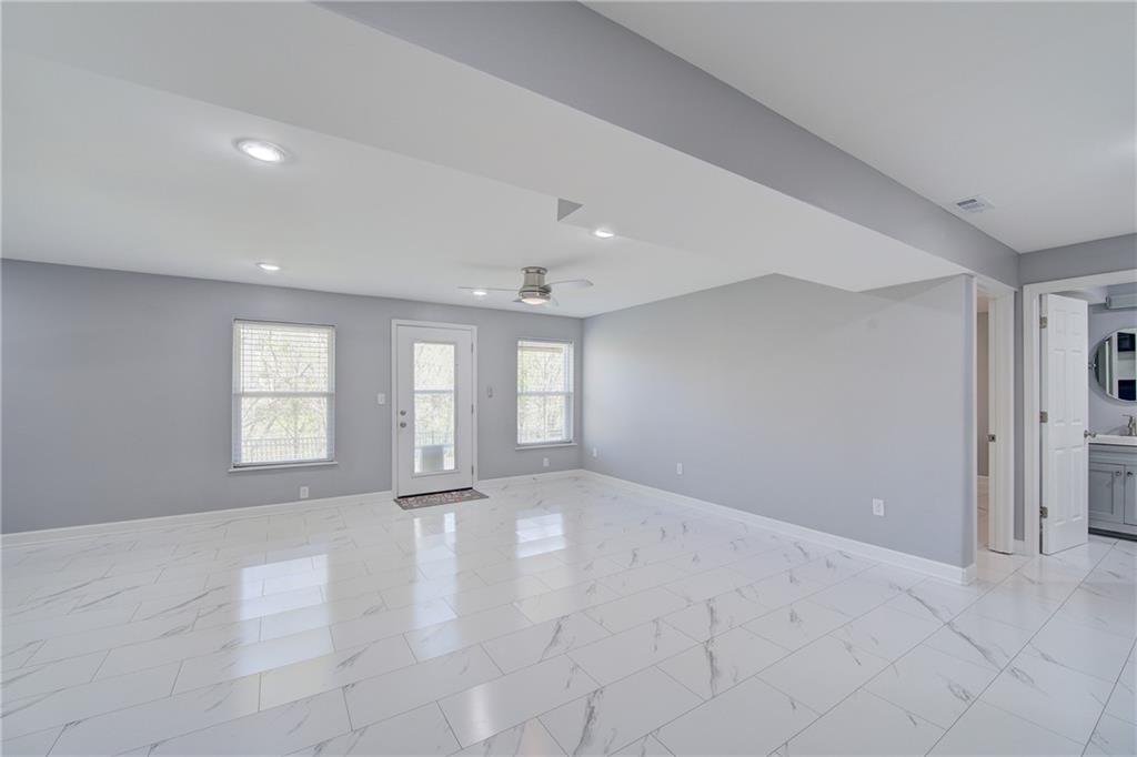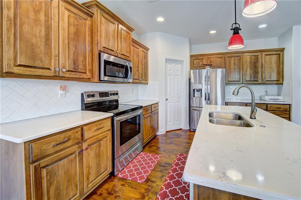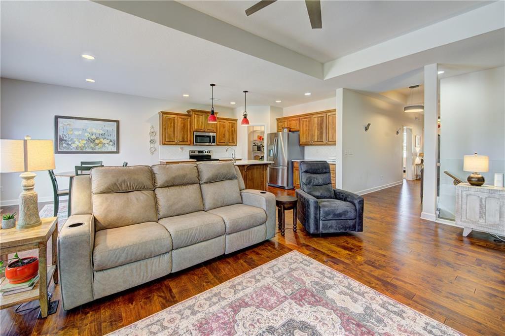 Better-than-new, maintenance-provided villa with a fenced yard that backs to trees and walking trail! Spacious and open floor plan includes the great room with gas fireplace and abundant natural light flowing seamlessly into the kitchen with walk in pantry, Quartz counters and large island with breakfast bar. The dining area walks out to a deck overlooking the backyard-perfect for relaxing and entertaining! The main-level primary suite is generously sized and includes a walk-in closet, double vanity, tile shower and private martini deck! Second bedroom, 2nd full bath and laundry room are also conveniently located on the main floor. The finished walkout lower level is ideal for multi-generation living with a large family room, wet bar, third bedroom, full bath, non-conforming fourth bedroom/office and access to the lower patio. Wired and ready with concrete pad for a generator! Maintenance-provided community includes lawn care, snow removal, and sprinkler system for only $132 per month. Fantastic location close to highways, shops, dining, walking trails and Stone Canyon Golf Course!