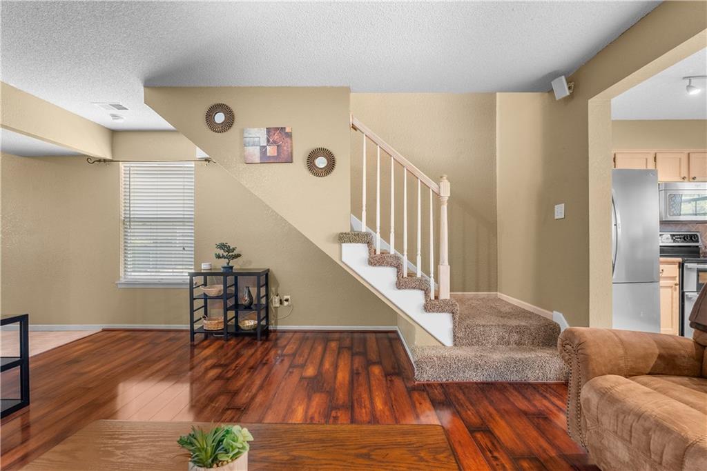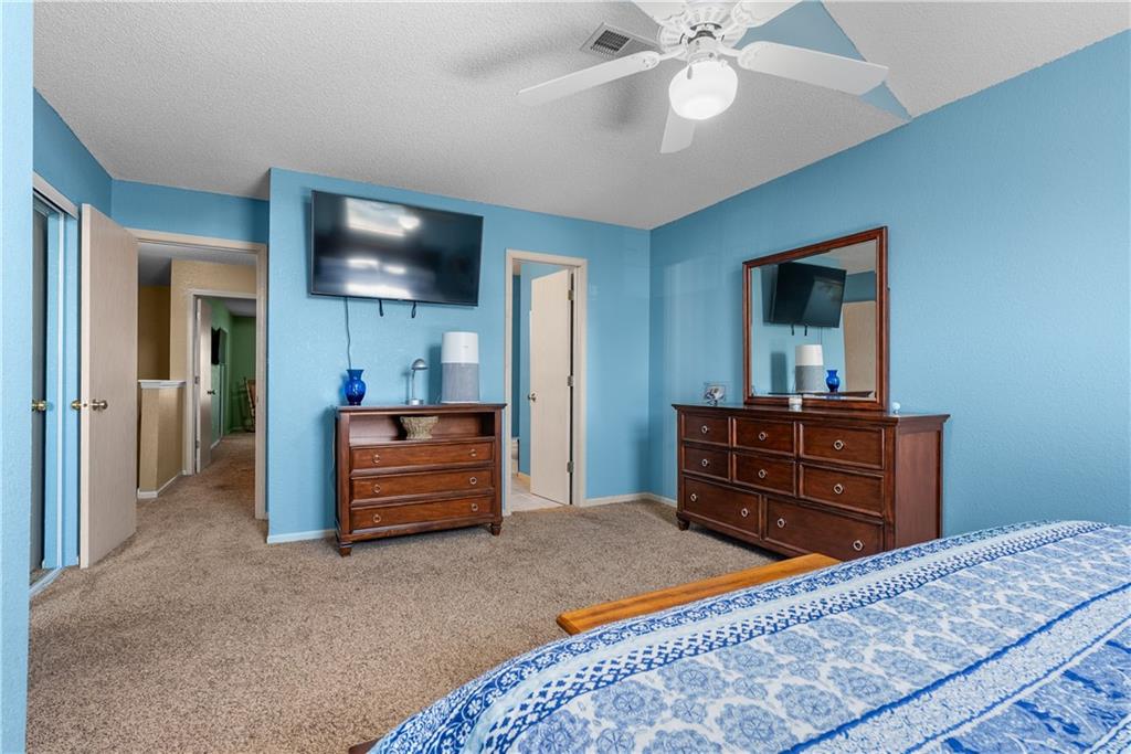 Enjoy low-maintenance living in this standout end-unit condo, known as the “Super 2” floor plan—offering similar square footage to many 3-bedroom units, but designed with 2 oversized primary suites instead. Backing to a beautiful treed greenspace, this condo offers privacy, peaceful views, and a functional 2-story layout. Upstairs, both spacious suites feature walk-in closets and private attached baths, while bedroom-level laundry adds everyday convenience. The open main level flows seamlessly between the kitchen, dining, and living areas, complete with a wood burning fireplace and laminate flooring for a warm, cozy feel. Unwind on your private patio and enjoy the quiet greenspace backdrop.