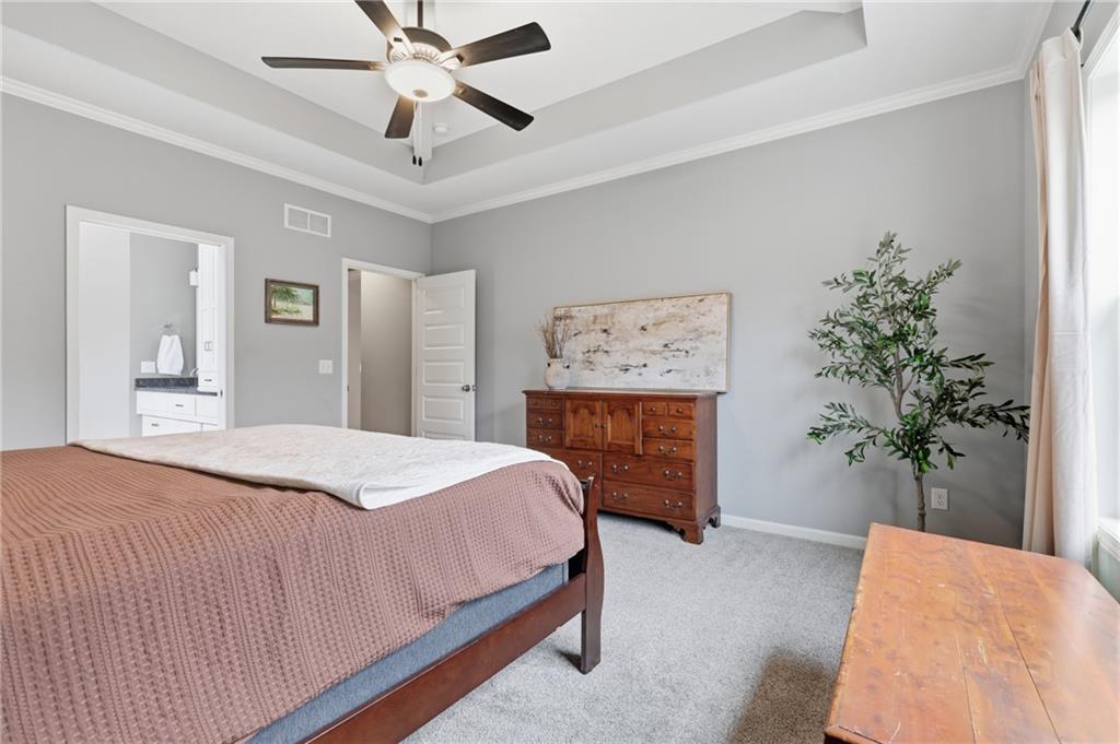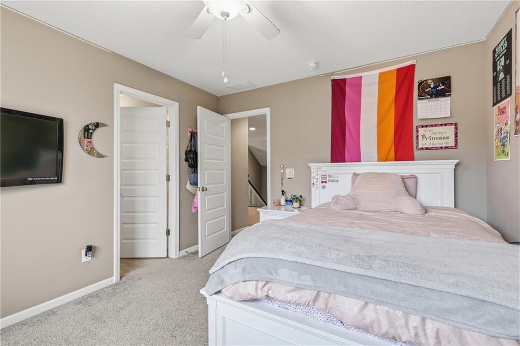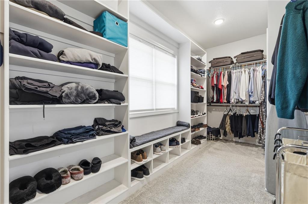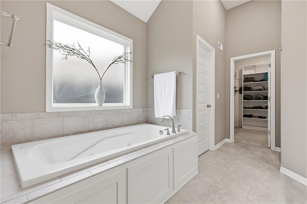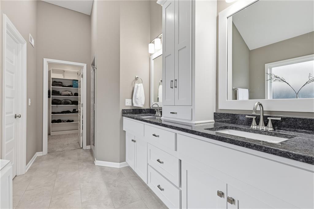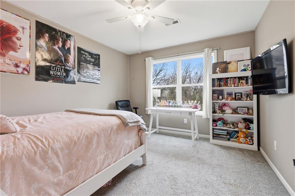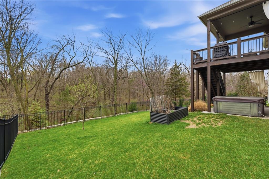 RARE 1.5 story, 5 br, 4 1/2 bath home in Chapel Ridge! Walk into soaring ceilings and windows with beautiful wooded views, light oak hardwood flooring, upgraded lighting, large stained island, upgraded vented hood, quartz and honed granite countertops, see-through gas fireplace from living to large outdoor covered deck, large pantry with pocket desk, large dining/eat-in kitchen. Primary suite with double vanity with tower storage, upgraded shower, and huge closet with conveniently attached laundry room. Upstairs has 3 large bedrooms all with walk-in closets, guest room with ensuite bath, and jack and jill bathroom with separate vanities. Beautifully finished walkout basement with huge rec room, 5th bedroom, full bathroom, wet bar with live edge wood/beverage fridge, ample unfinished storage, and under deck patio. Pristine 3 car garage, upgraded landscaping/retaining walls, metal fence. Come make it your dream home in highly sought after Chapel Ridge and Park Hill schools!