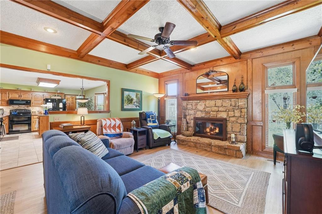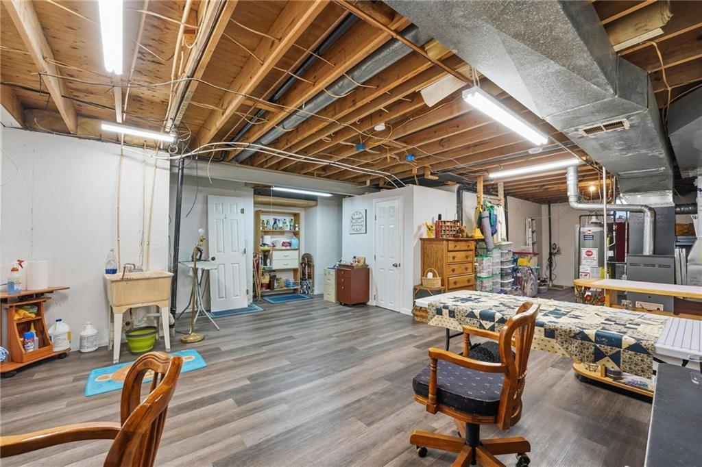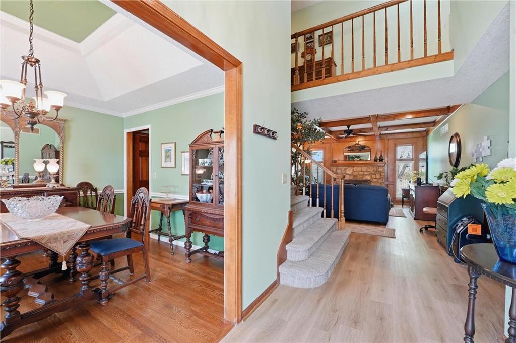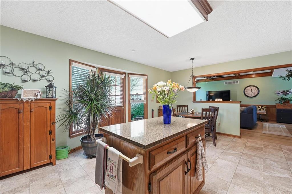 Welcome Home! This well cared for beauty is move in ready for you. Main level living with 2 large bedrooms and one full bath upstairs. The spacious main level has a calm and pleasing primary suite with walk in closet, separate shower and large garden tub, double vanity, skylight and vaulted ceiling. The formal dining showcases itself off the entry. The center of the home is the beautiful and classic living room. It has a masonry fireplace, box beam ceiling, built in wet bar and LVP flooring. The kitchen is a dream and all updated for you with tile floor, quartz countertops and tile backsplash. Kitchen island for easy food prep and built in desk. Laundry and half bath off kitchen area makes an easy flow of living, washer and dryer stay with home. The basement has a great room, hobby room with workbench, craft room with sink and more! New LVP flooring, 3 year old HVAC with humidifier and air cleaner. Whole home water purification system. The back yard is ready for summer cook outs and fun in the sun. Newer stone patio, wood fencing and lovely landscaping. The driveway is newer and the garage floor is acrylic coated. The garage also has cabinets and a fridge that stays. All window treatments stay. Security system. The centrally located neighborhood is friendly and close to highway access, the new middle school and the dog park. Basement SF of finished area is estimated.