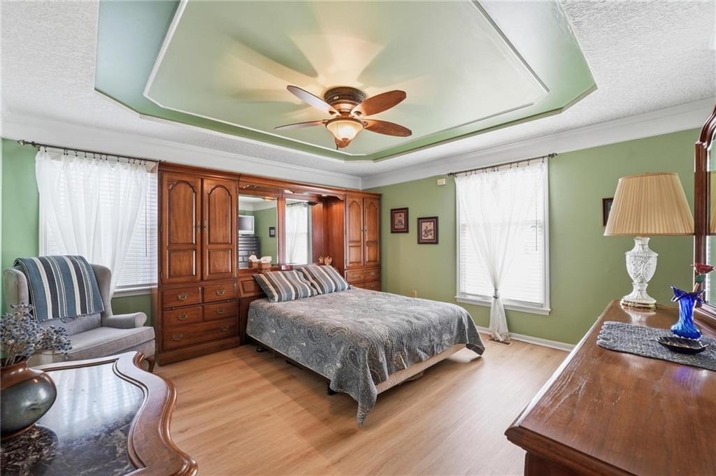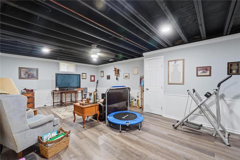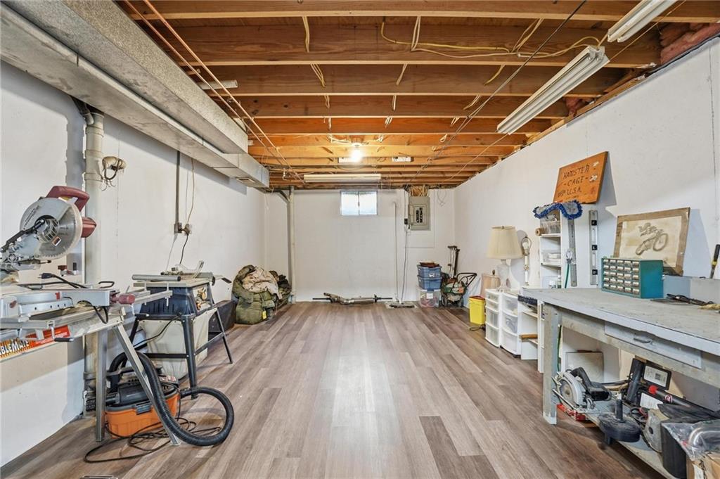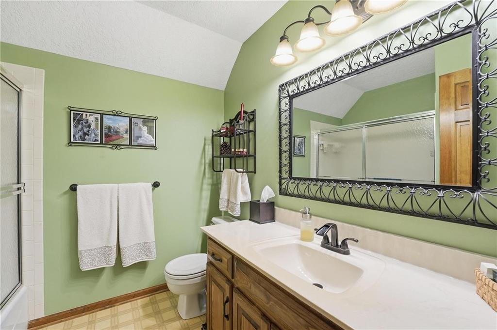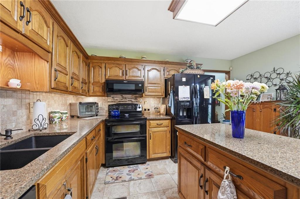 Welcome Home! This well cared for beauty is move in ready for you. Main level living with 2 large bedrooms and one full bath upstairs. The spacious main level has a calm and pleasing primary suite with walk in closet, separate shower and large garden tub, double vanity, skylight and vaulted ceiling. The formal dining showcases itself off the entry. The center of the home is the beautiful and classic living room. It has a masonry fireplace, box beam ceiling, built in wet bar and LVP flooring. The kitchen is a dream and all updated for you with tile floor, quartz countertops and tile backsplash. Kitchen island for easy food prep and built in desk. Laundry and half bath off kitchen area makes an easy flow of living, washer and dryer stay with home. The basement has a great room, hobby room with workbench, craft room with sink and more! New LVP flooring, 3 year old HVAC with humidifier and air cleaner. Whole home water purification system. The back yard is ready for summer cook outs and fun in the sun. Newer stone patio, wood fencing and lovely landscaping. The driveway is newer and the garage floor is acrylic coated. The garage also has cabinets and a fridge that stays. All window treatments stay. Security system. The centrally located neighborhood is friendly and close to highway access, the new middle school and the dog park. Basement SF of finished area is estimated.