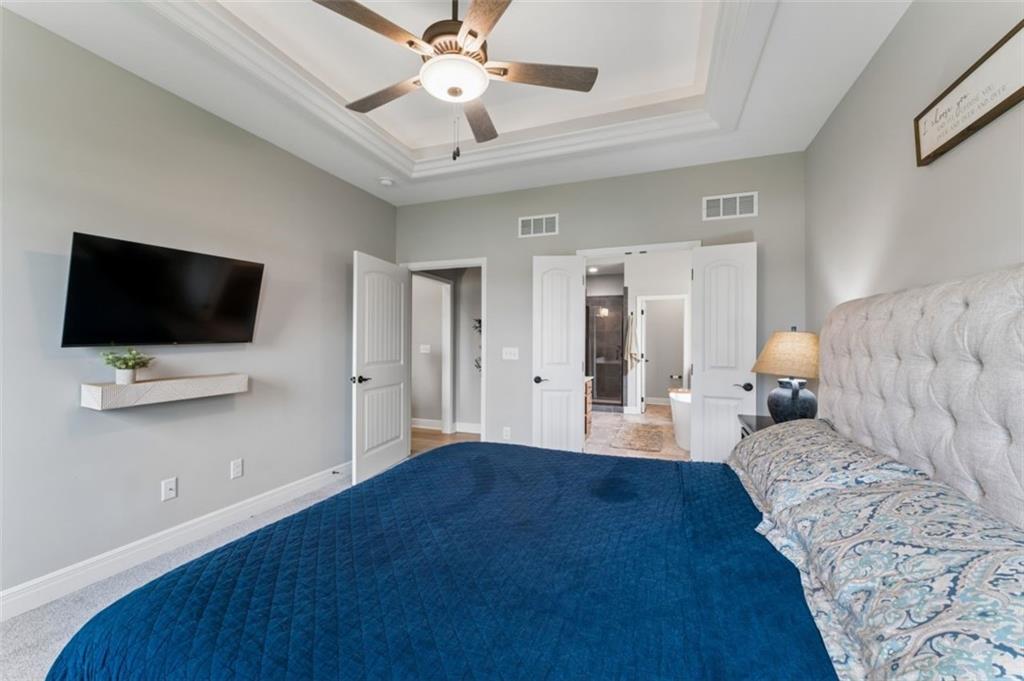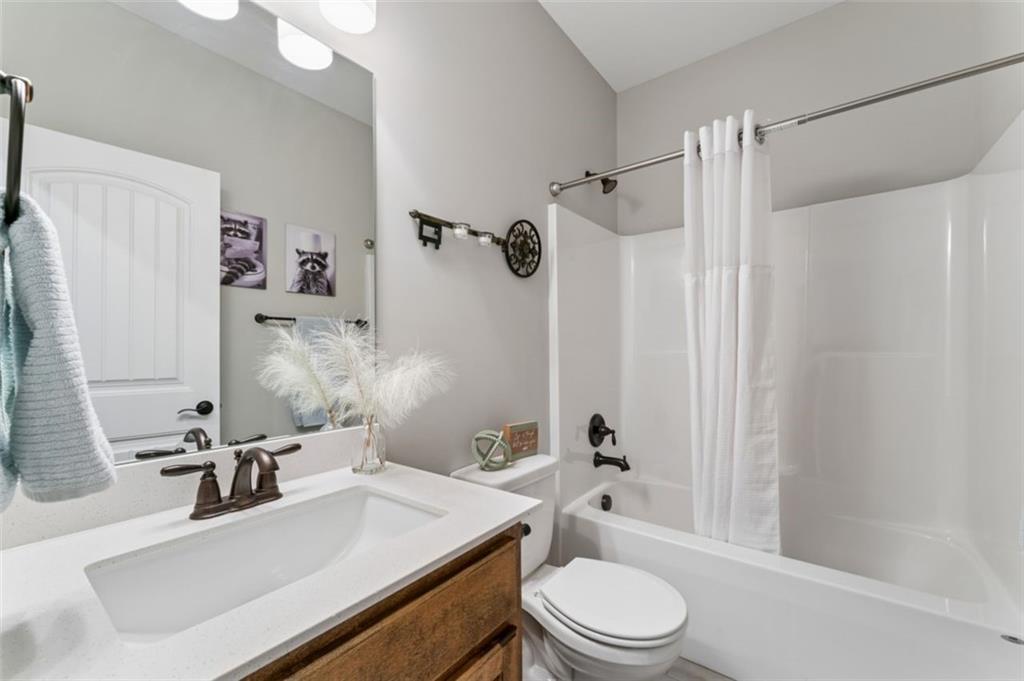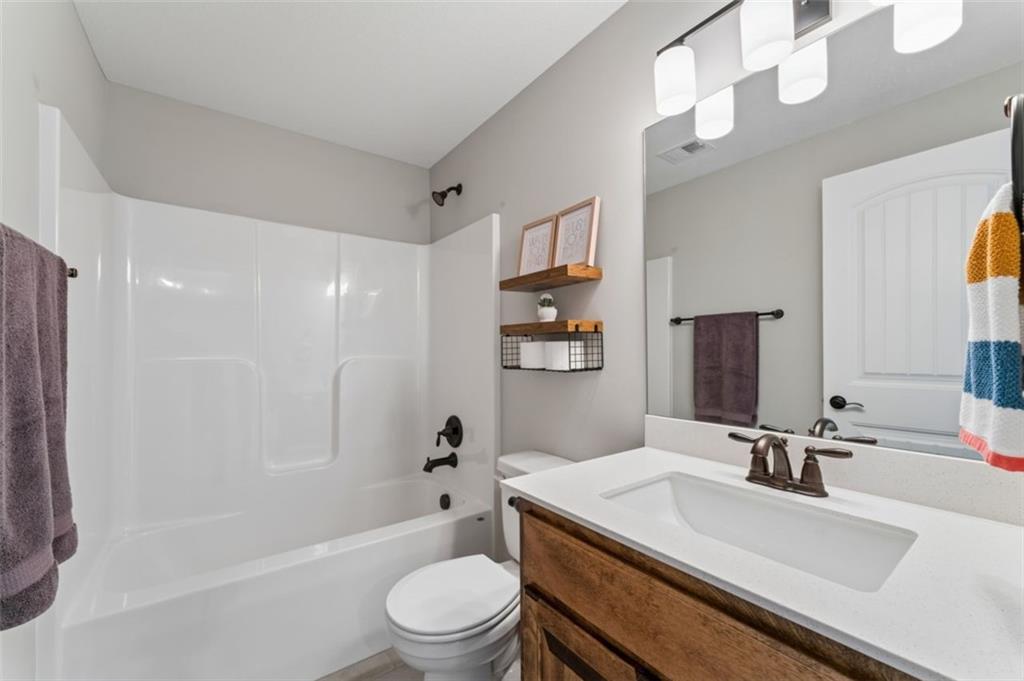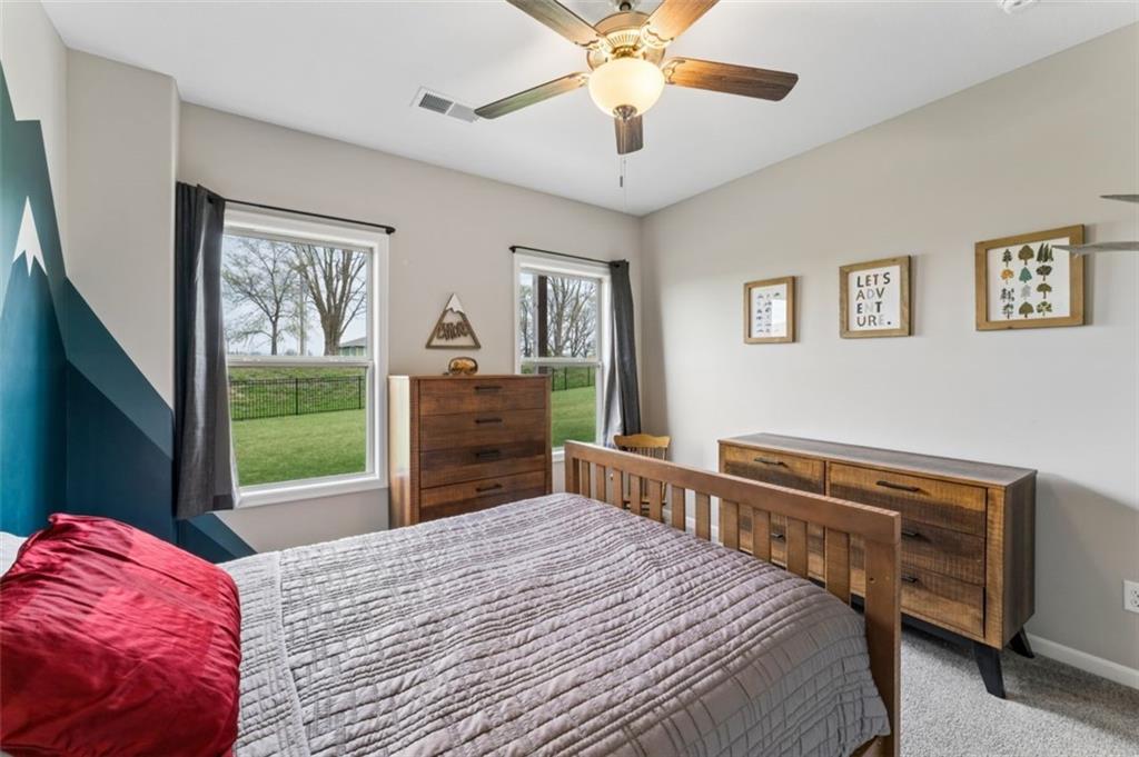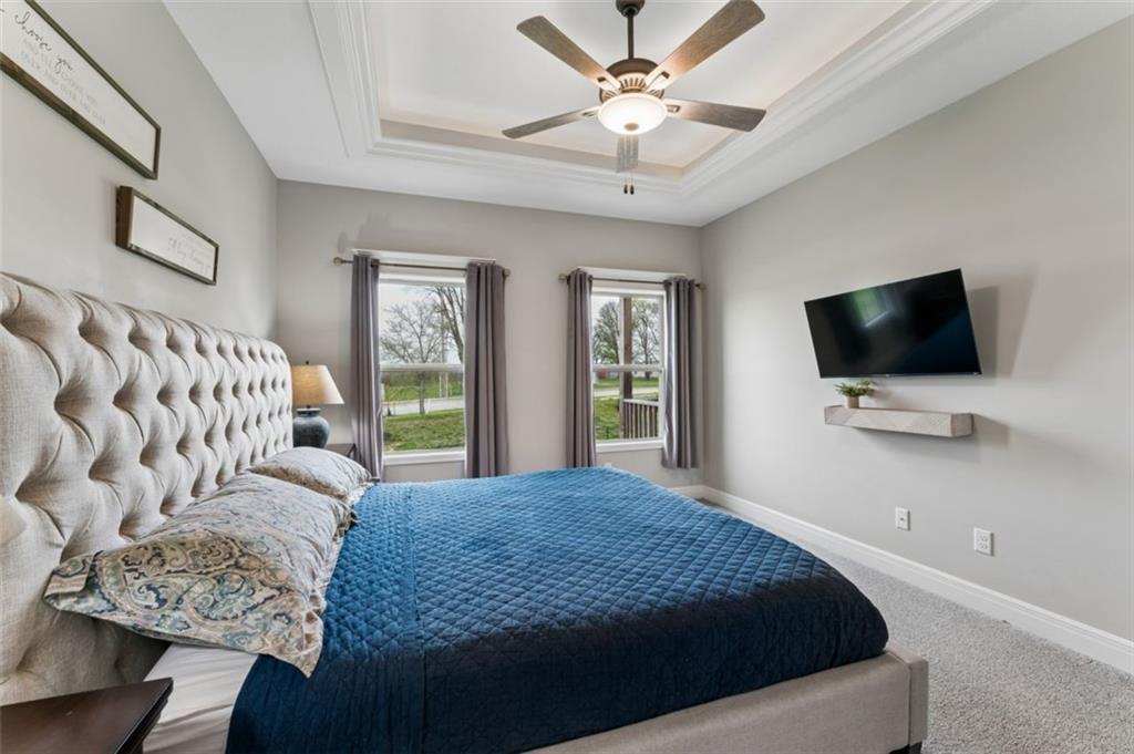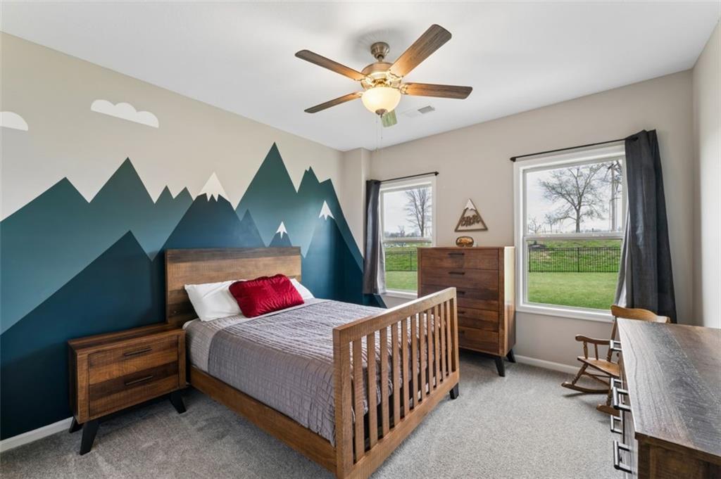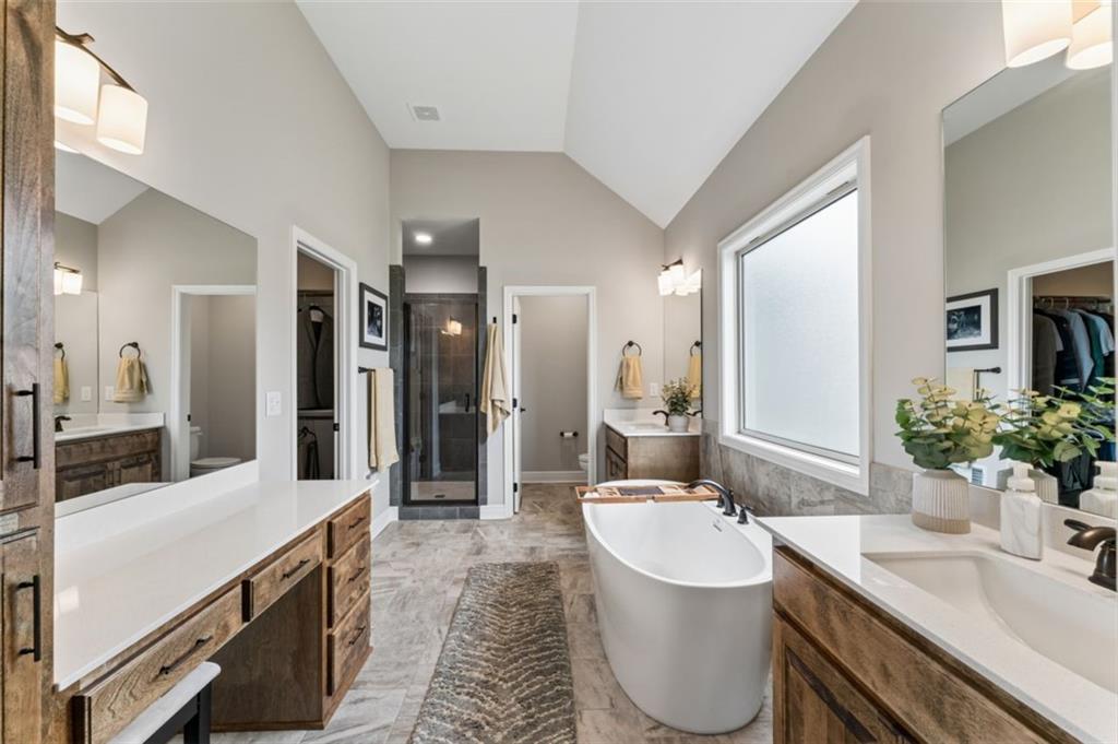 Welcome to "The Fairway" by Hoffmann Custom Homes, nestled in the highly desirable Waterford subdivision! Built in 2024, this beautifully designed reverse ranch offers 4 bedrooms and 3 full baths with comfortable, modern living. Step inside to an open main floor with soaring vaulted ceilings, a warm and inviting great room with a zero clearance gas fireplace, and a stylish kitchen featuring a spacious island, pantry, stained cabinetry, and stainless steel appliances, perfect for both everyday living and entertaining. The main level primary suite provides a relaxing retreat with a walk in closet, and you will appreciate the convenience of main floor laundry. Downstairs, the finished walk out basement offers additional living space along with a wet bar, making it ideal for hosting or unwinding. Enjoy peaceful outdoor moments on the covered deck or patio, and take advantage of the 3 car garage and in ground sprinkler system for added ease. Located in the North Kansas City School District and part of a community with a pool included in the HOA, this home truly has it all. Come see what makes this one so special!