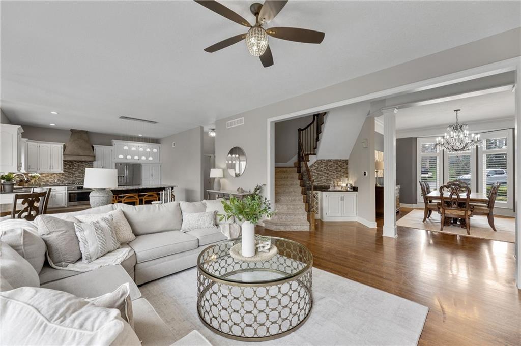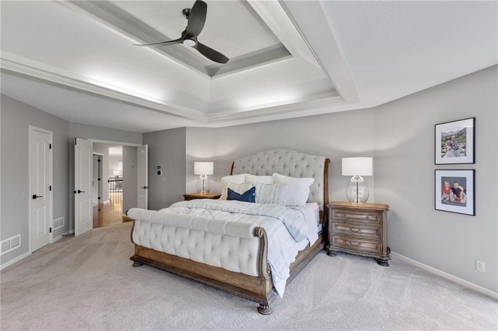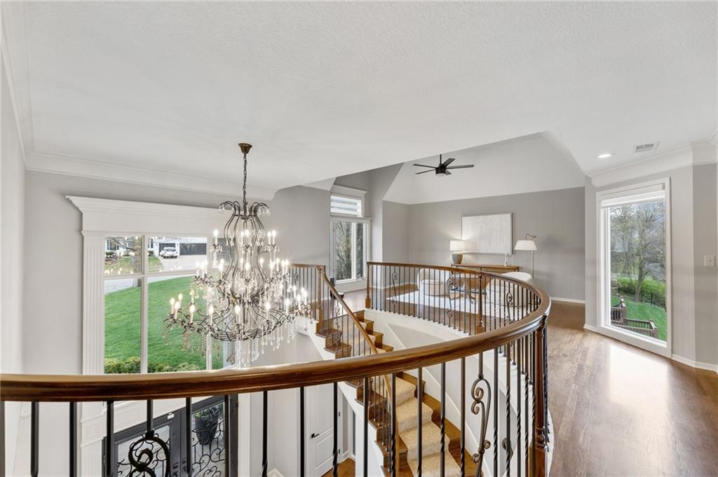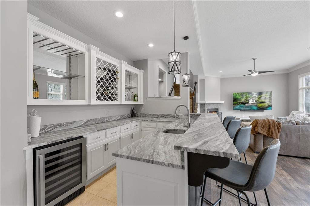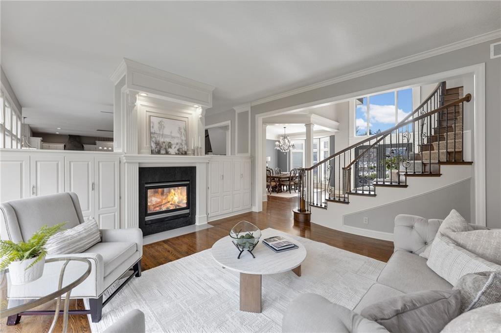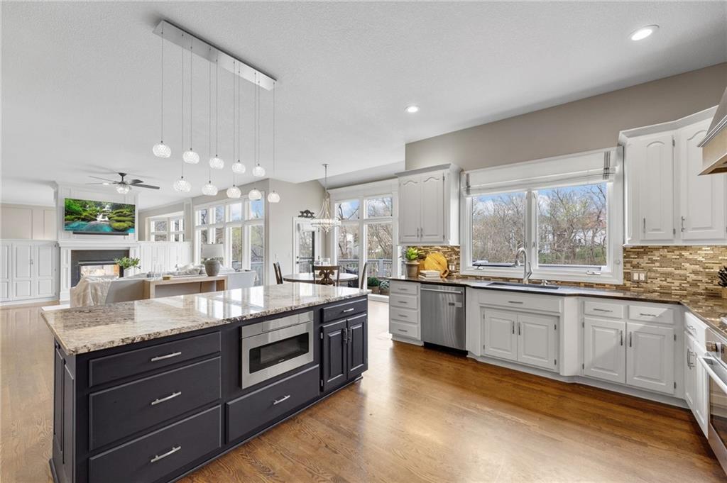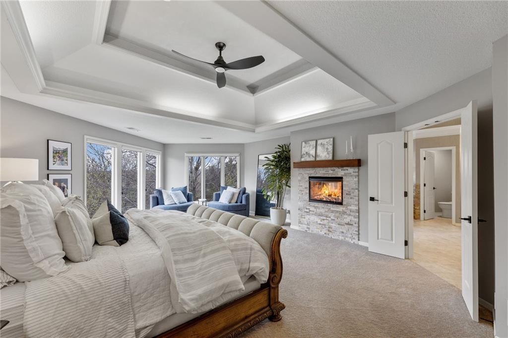 Tucked at the end of a quiet cul-de-sac in the coveted Pavilions neighborhood, this stunning 5-bedroom home delivers the lifestyle buyers dream about. Double doors and a beautiful curved walkway sets the tone before you even step inside — and from there, every detail delivers. The soaring kitchen and oversized island are made for gathering, while the custom designed office, mudroom and walk in pantry are an organizers dream. Upstairs, the loft offers flexible space for work or play, and the primary suite is nothing short of a retreat — featuring a spa-worthy soaker tub, a cozy fireplace, and a closet that rivals most bedrooms. Whether sipping your morning coffee and watching the sunrise above the trees or enjoying a cozy fireside conversation, you won’t want to leave. The finished lower level goes above and beyond with a custom bar, full bedroom with ensuite, dedicated theater, exercise room, and play room. Step outside and breathe — private, treed views from every rear window and a gorgeous deck make you forget the world exists. Community pool, cul-de-sac privacy, and all the space you’ve been waiting for. Welcome home!