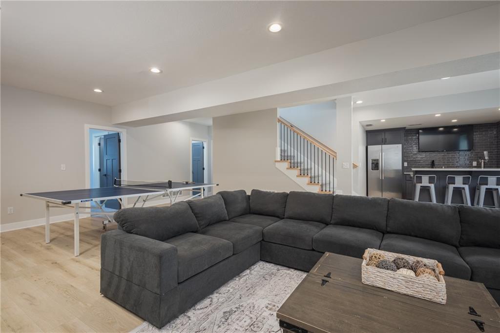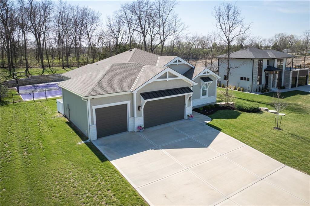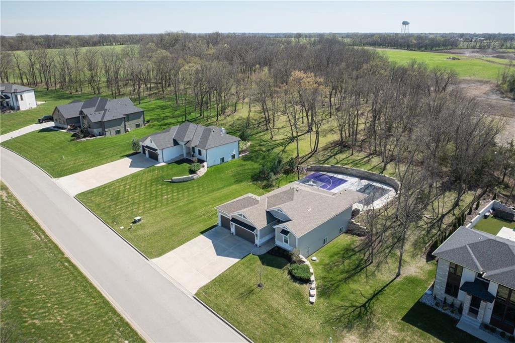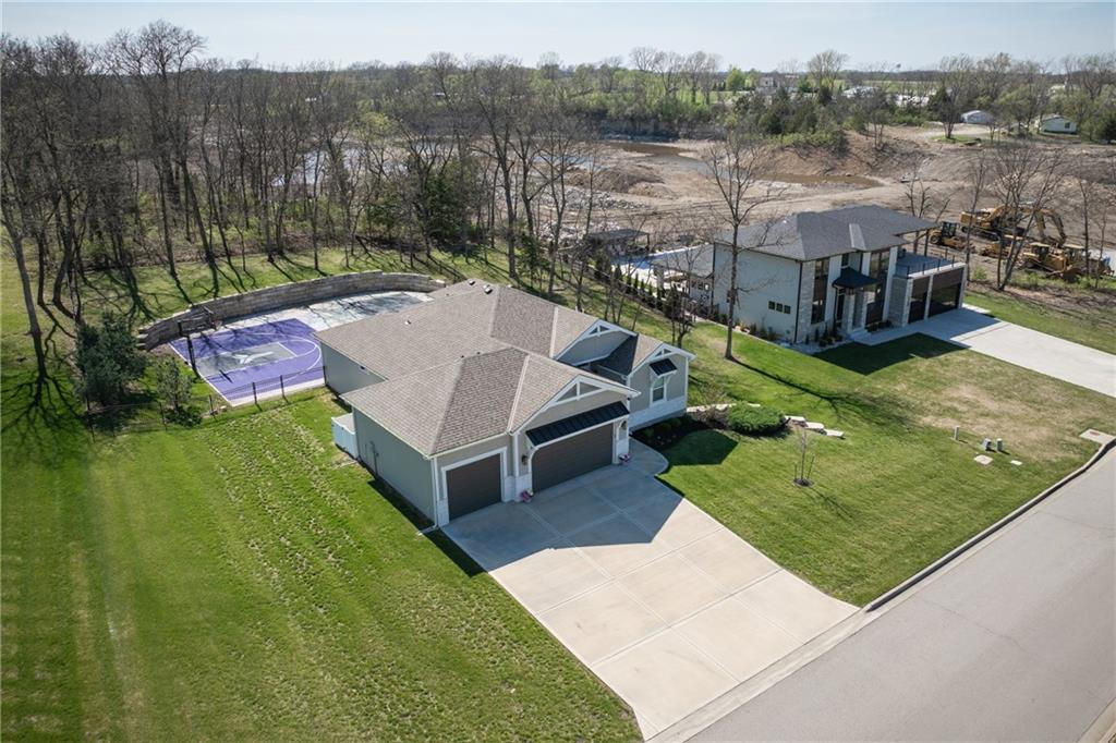 Experience resort-style living in this stunning 4.5-year-old reverse ranch with 4 bedrooms & 3 bathrooms with upscale finishes and exceptional amenities throughout. Designed for both everyday comfort & elevated entertaining, this home truly has it all. Step outside to your private oasis featuring a heated saltwater/chlorine pool complete with a built-in basketball goal, expansive outdoor kitchen with premium Blaze appliances & a half-court sport basketball court—perfect for hosting or relaxing in style. Inside, the main level showcases real 5” hardwood floors & a chef’s kitchen outfitted with top-of-the-line Café appliances, including an Advantium oven. A spacious walk-in butler’s pantry provides additional cabinetry & a beverage refrigerator for ultimate convenience. The finished basement is an entertainer’s dream, featuring a full-size bar with a built-in kegerator. The luxurious primary suite is a true retreat, boasting heated bathroom floors, dual shower heads including a rain feature, tall ceilings with a marble accent wall & a TV positioned above the soaking tub for added relaxation. The oversized walk-in closet includes a built-in dresser, custom shelving, and three-tiered hanging rods. Additional highlights include a functional mudroom off the garage, enhanced interior and exterior lighting, generously sized bedrooms with walk-in closets, and premium finishes throughout. Situated on nearly ¾ of an acre, the property offers a picturesque setting with mature trees, green space, and a striking stone wall. Enjoy exclusive access to the lake with a community dock slip and available lift lease, plus the added benefit of 2026 HOA fees covered for the new owner. The neighborhood enhances the lifestyle with amenities including a park, walking trails, pickleball and tennis courts, a yacht club & an upcoming community pool & clubhouse. Don’t miss this rare opportunity to own a home that perfectly blends luxury, recreation, and tranquility. *Owner/Agent*