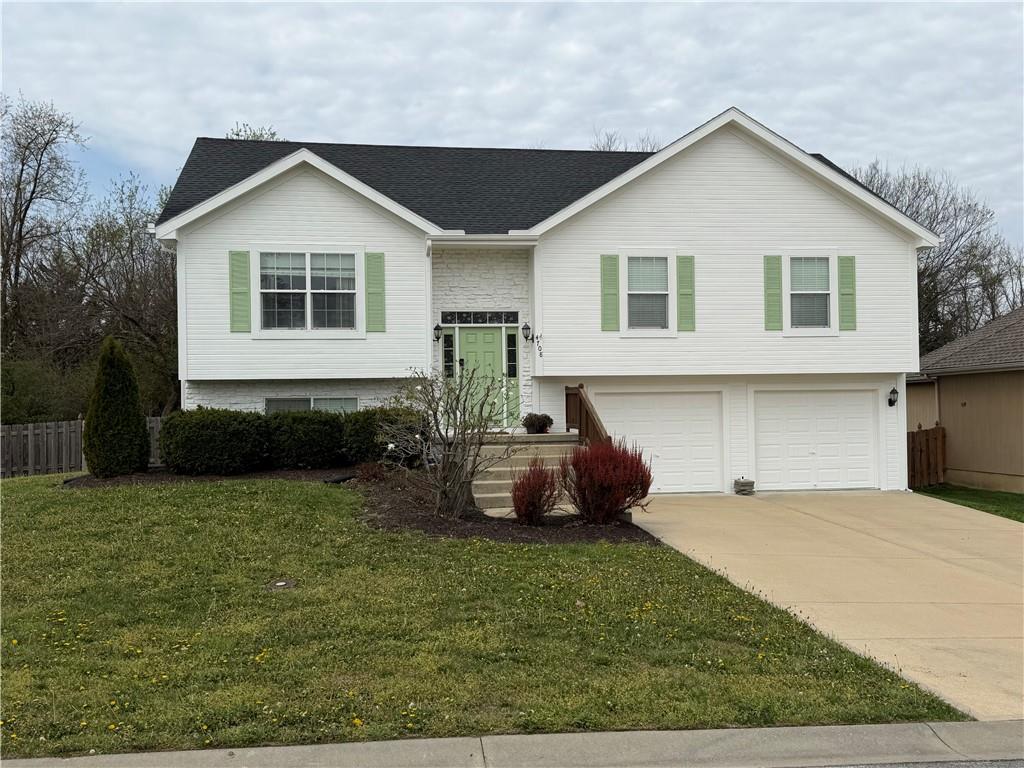 Next DAY SHOWINGS ONLY!! The Monterey is a F/B split that offers a lot of room. The main floor offers kitchen/eating area w/ hardwood floors and beautiful Fireplace, Greatroom, Primary Bedroom Suite plus 2 more Bedrooms, the lower area has a Family Room that walks out to the back yard and the 4th bedroom. This home offers New Exterior Paint and upgrades to include Granite in the kitchen and Satin fixtures. Garage is oversized and allows for a small car or work bench to the front. Backyard has trees to the backside so you can't see your neighbors. Sq ft and measurements are approx please verify