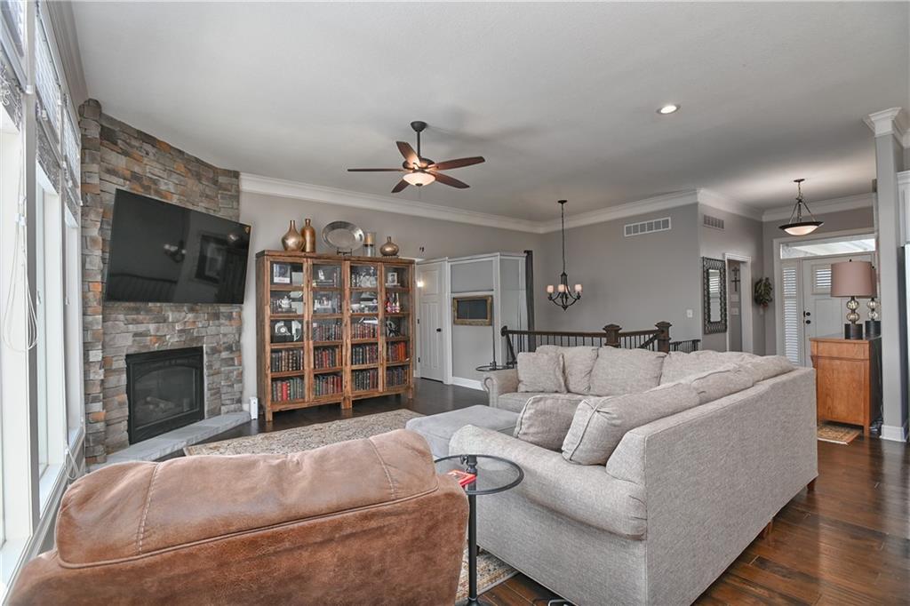 Exceptional Reverse 1 1/2 that has been remodeled and improved. The beautiful kitchen features crisp white cabinets, easy care quartz counters, stainless steel appliances including a gas cooktop, walk in pantry and a breakfast bar too. There are two bedrooms and two full baths on the main level. The primary bath features heated tile floors, a seperate tub and shower, lots of built in storage. California Closets designed the primary walk in closet and laundry room as well as the storage system in the garage. The lower level has an additional two bedrooms, full bath plus a family room with a wet bar and ample storage in the unfinished area of the basement. Enjoy your morning coffee on either of the two screened porches with views of treed greenspace and nature. And just in time for spring and summer...a heated in-ground saltwater pool with an automatic cover! Plus a Hot Tub. All this and more! OPEN FRIDAY 5-7pm