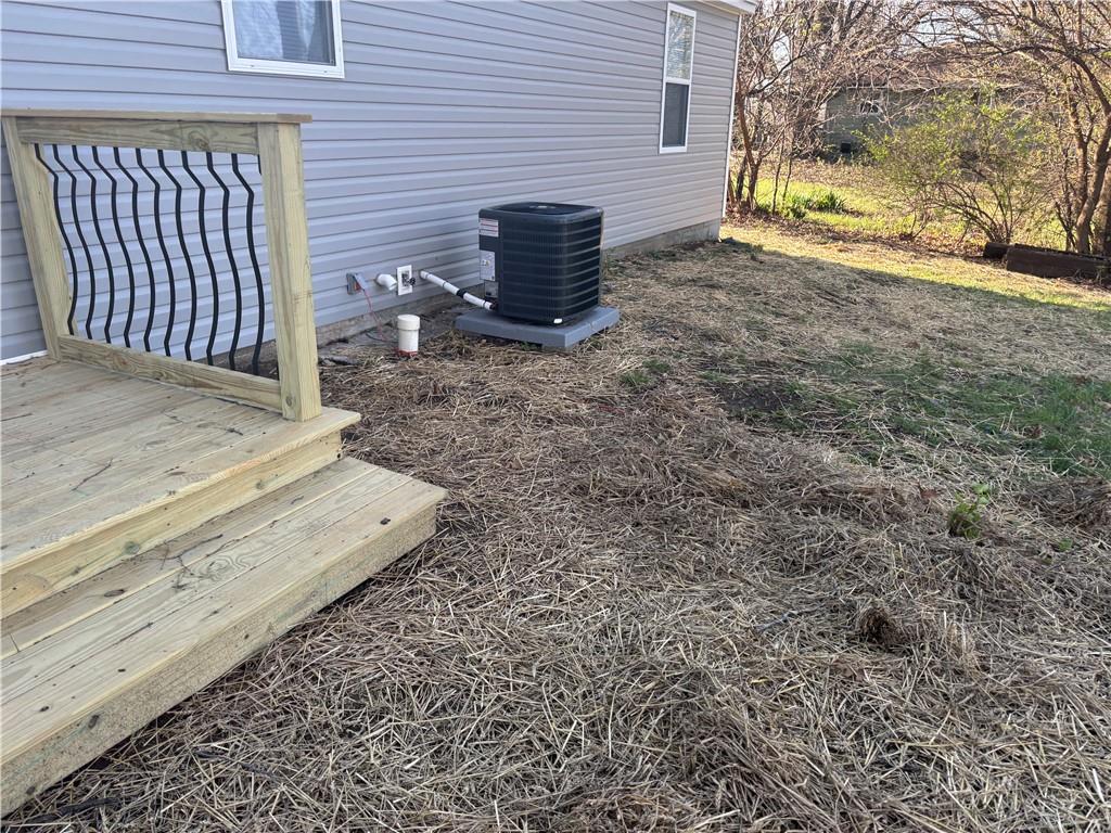 View of home's exterior featuring a deck and a central AC unit