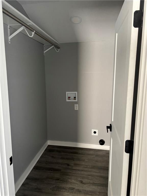 Laundry room featuring dark wood-type flooring, washer hookup, and hookup for an electric dryer