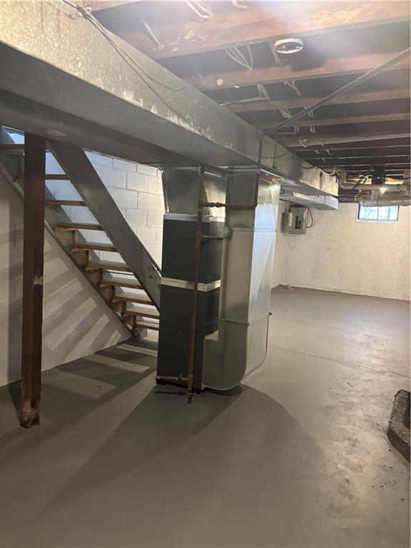 Basement with heating unit and electric panel