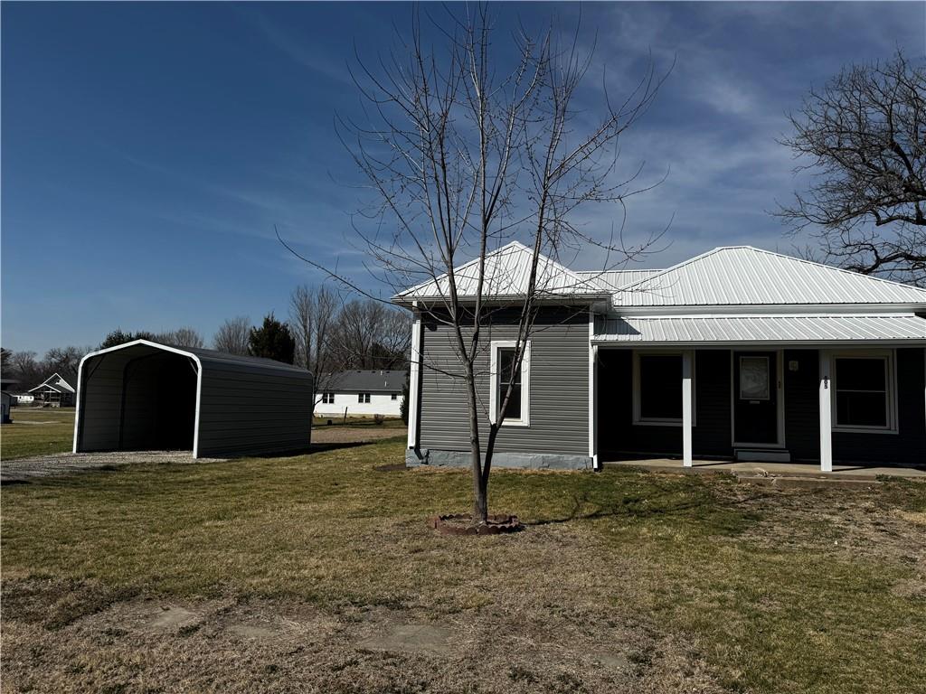 Cheaper than Rent! 3 bedroom 1 bath cottage in Burlington Junction mo. Great starter home or perfect to downsize. The sellers have recently completed: new siding, metal roof and updated the kitchen with beautiful custom cabinets (stove, refrigerator and microwave stay). It has an unfinished basement which where you will find the updated furnace and newer water heater. The central air is brand new this season. It has a laundry area off the kitchen which would also be a great mud room (washer and dryer stay). Located on a quiet street you can enjoy the large flat yard and store your mover and car in the brand-new carport. Come check this cute house out today.