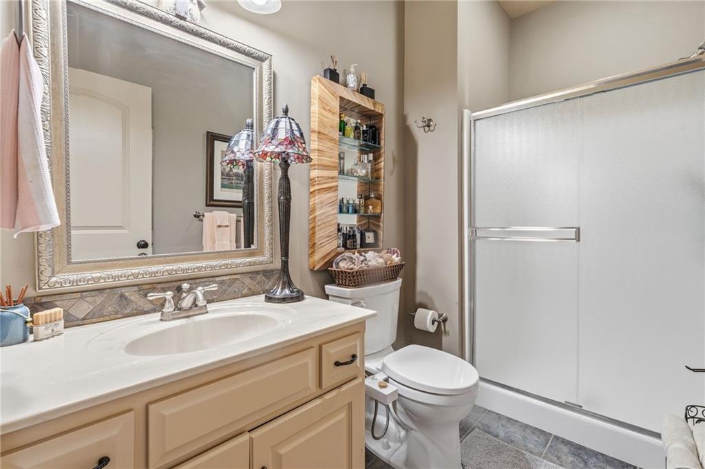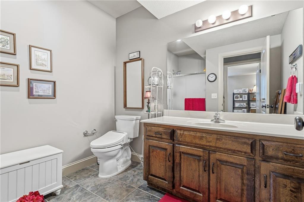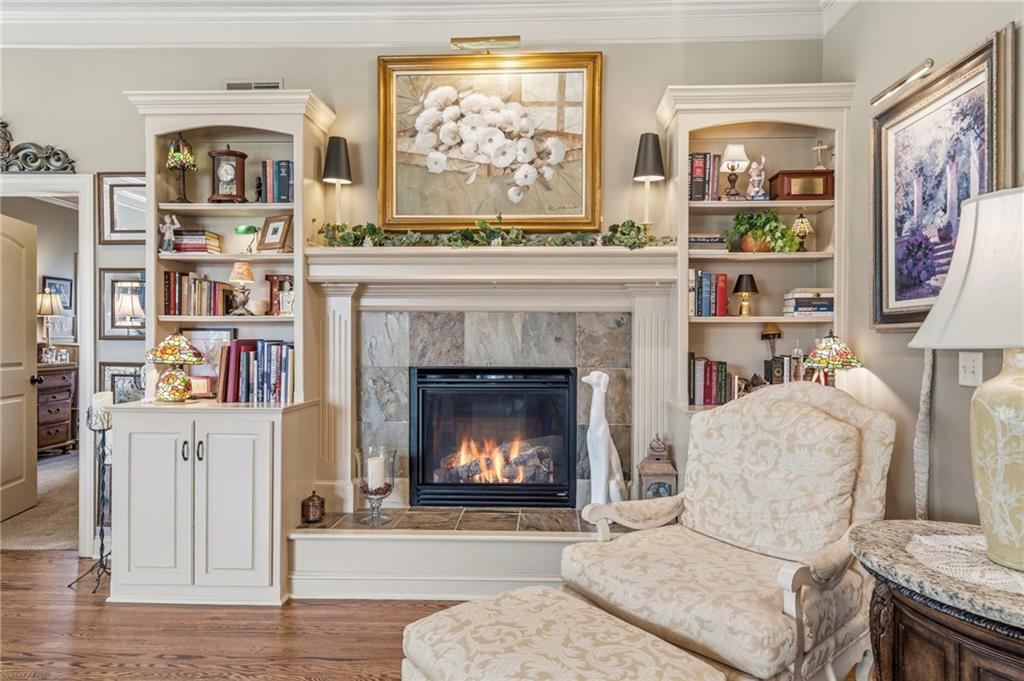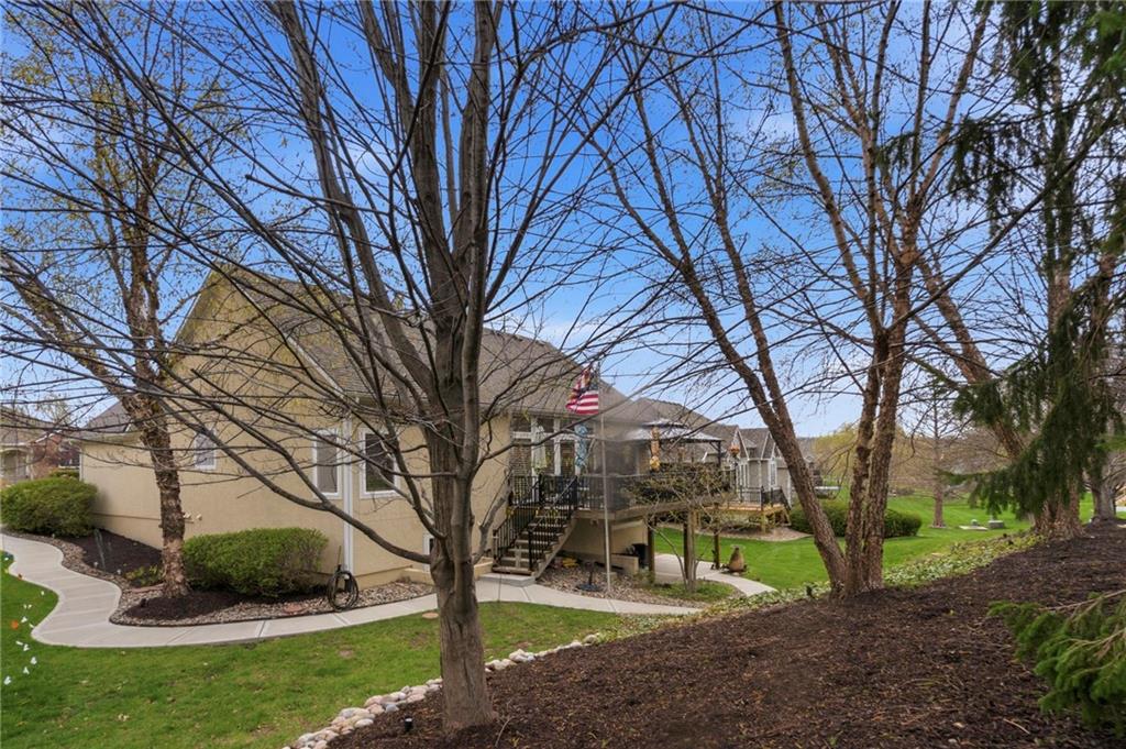 Welcome to this beautifully maintained reverse 1.5-story home offering true maintenance-provided living and an exceptional blend of comfort and style. From the moment you step inside, you’ll appreciate the slate tile entry flanked by elegant columns that open into a spacious living area featuring a cozy fireplace and custom built-ins—perfect for both relaxing and entertaining. The main level showcases a light-filled dining area and a well-appointed kitchen complete with granite countertops, stainless steel appliances, a gas convection oven, pull-out shelving, and built-in storage. Floor-to-ceiling windows frame a peaceful, tree-lined view, bringing the outdoors in and filling the space with natural light. Just off the kitchen, step out onto the partially covered, gated deck—ideal for enjoying morning coffee or evening gatherings. The oversized primary suite offers a private retreat with a spa-like, Roman-style bathroom featuring a vaulted ceiling, slate tile flooring, double vanity, jetted tub, separate shower, and a large walk-in closet, along with a private toilet room. The main level also includes a convenient laundry room with built-ins and direct access to the garage. The finished lower level expands your living space with a comfortable family room, third bedroom with a walk-in closet, a full bathroom, and a fourth bedroom—perfect for guests, hobbies, or a home office—plus an unfinished storage area for all your extras. All of this in a prime location close to highways, shopping, dining, and entertainment—making everyday living both easy and convenient.