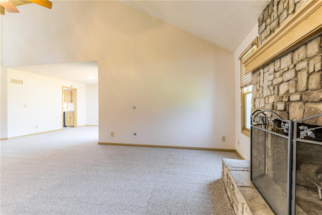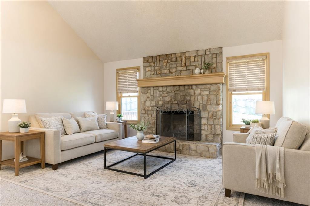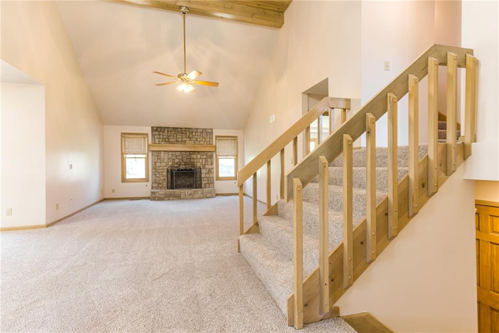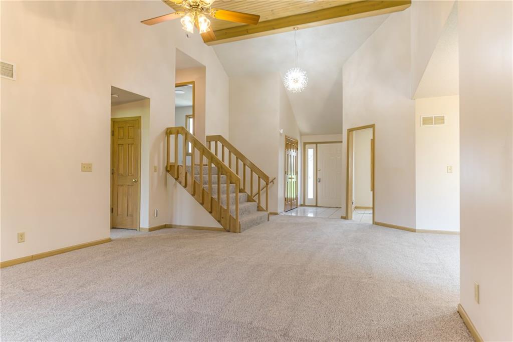 Welcome home to this open and airy retreat that effortlessly blends space, warmth, and character. A grand entry greets you with a stunning chandelier, setting the tone for the warmth found throughout. The kitchen offers generous cabinetry and storage, making it as functional as it is inviting. The heart of the home is the dramatic two-story living room, where a stone fireplace commands attention and creates the perfect gathering space for every season. Tucked conveniently on the main level, the primary suite is a true sanctuary — featuring a beautiful bay window, a spacious walk-in closet, and a private bathroom with two sinks and a shower. Upstairs, three generously sized bedrooms share a well-appointed hall bathroom, offering plenty of room for your needs. All the carpet is brand new. A dedicated laundry room on the garage level adds everyday convenience, and just beyond it, a sprawling unfinished basement presents endless possibilities to expand your living space and truly make it your own. Step outside to the back deck and take in the peaceful views of a deep, expansive backyard — ideal for entertaining, play, or simply unwinding at the end of the day. The home has a brand new roof as well! This is more than a house — it's the home you've been waiting for. Come see it for yourself!