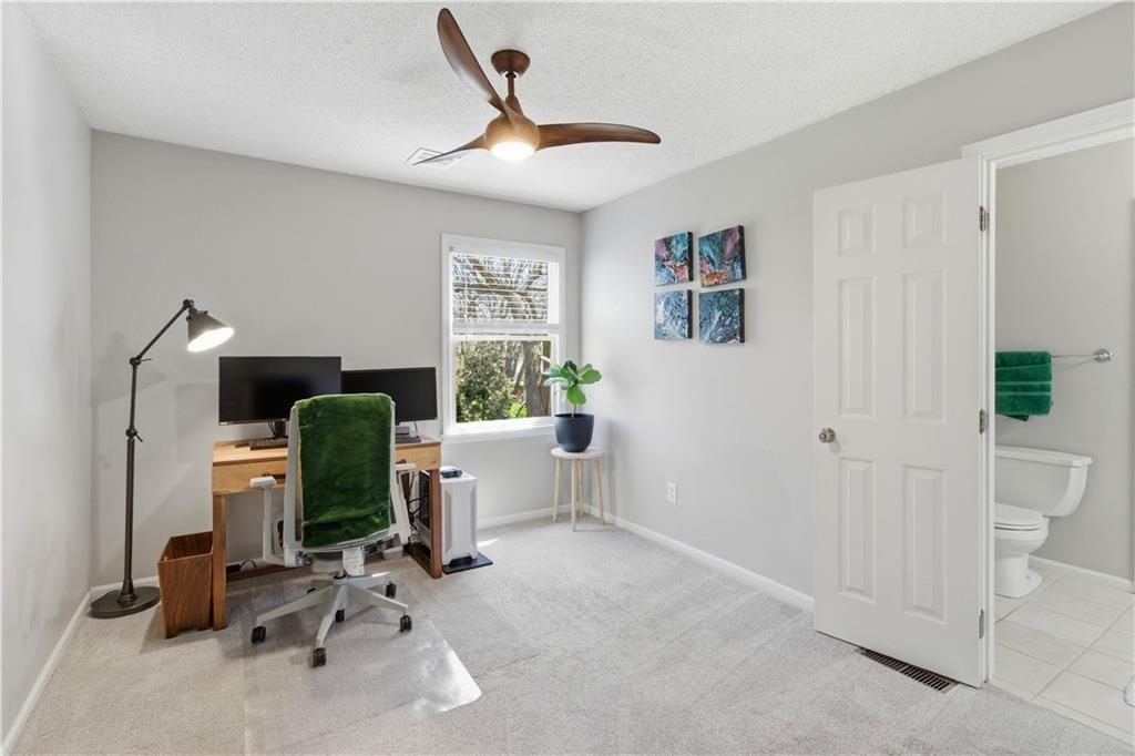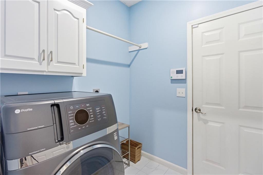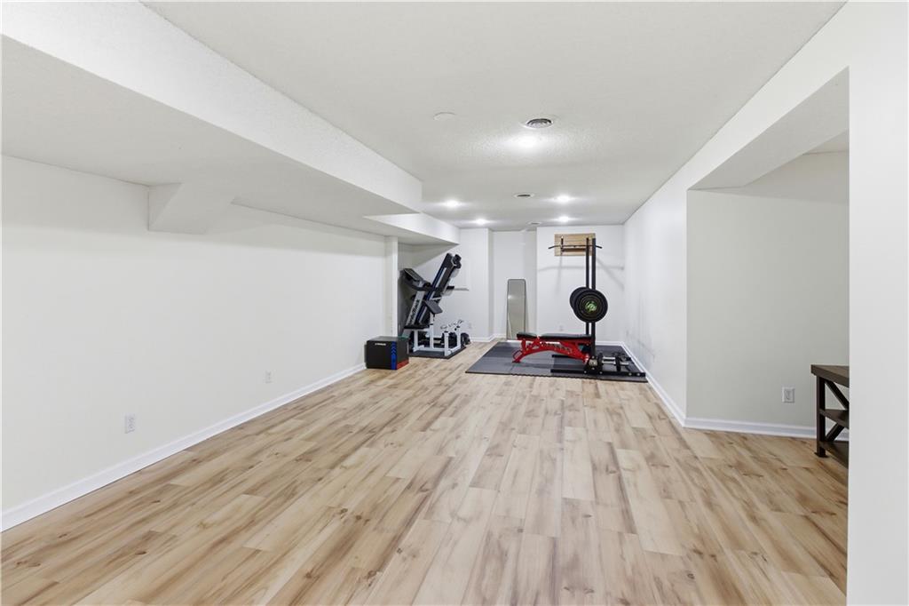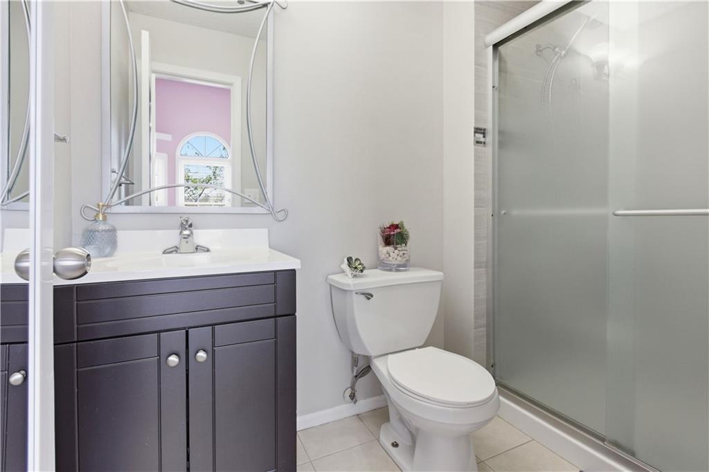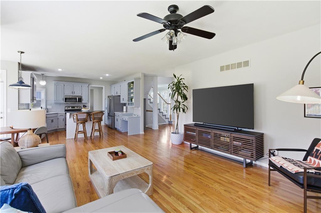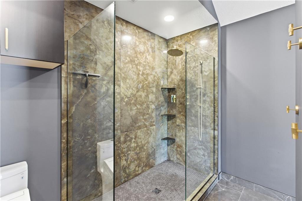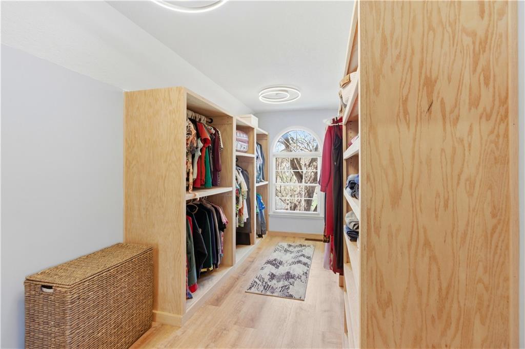 Stunning formal front living & dining room flows to light & bright great room/kitchen combo with floor to ceiling windows. Kitchen features stainless steel appliances, plenty of cabinets and counter space & island. NEW Fridge/Dishwasher. Great room overlooks lush, well manicured back yard. Half bath and laundry off main level and garage access. NEW Washer/dryer combo. The grand staircase leads you to the second floor bedroom level. Good sized rooms all with attached baths. Guest room off the front and bedrooms 2/3 with jack and jill style bath. AMAZING primary suite with large bedroom and leads to gorgeously renovated modern bathroom. Get ready in the mornings in style! HUGE walk in closet with beautiful built-ins. Sleek finished basement has many possibilities: office space, media room, play room. Half bath down here as well. Newer AC! Shaded fenced backyard with large patio. Neighborhood pool! Located in the award winning Olathe School District and so much more!
