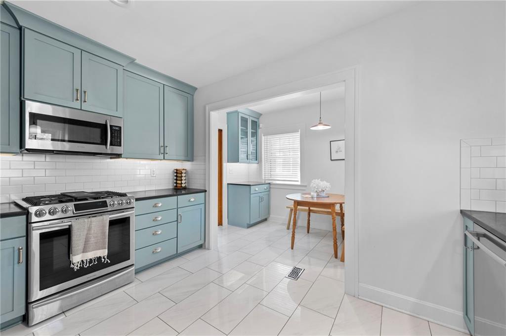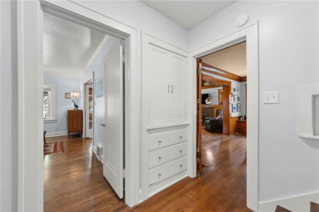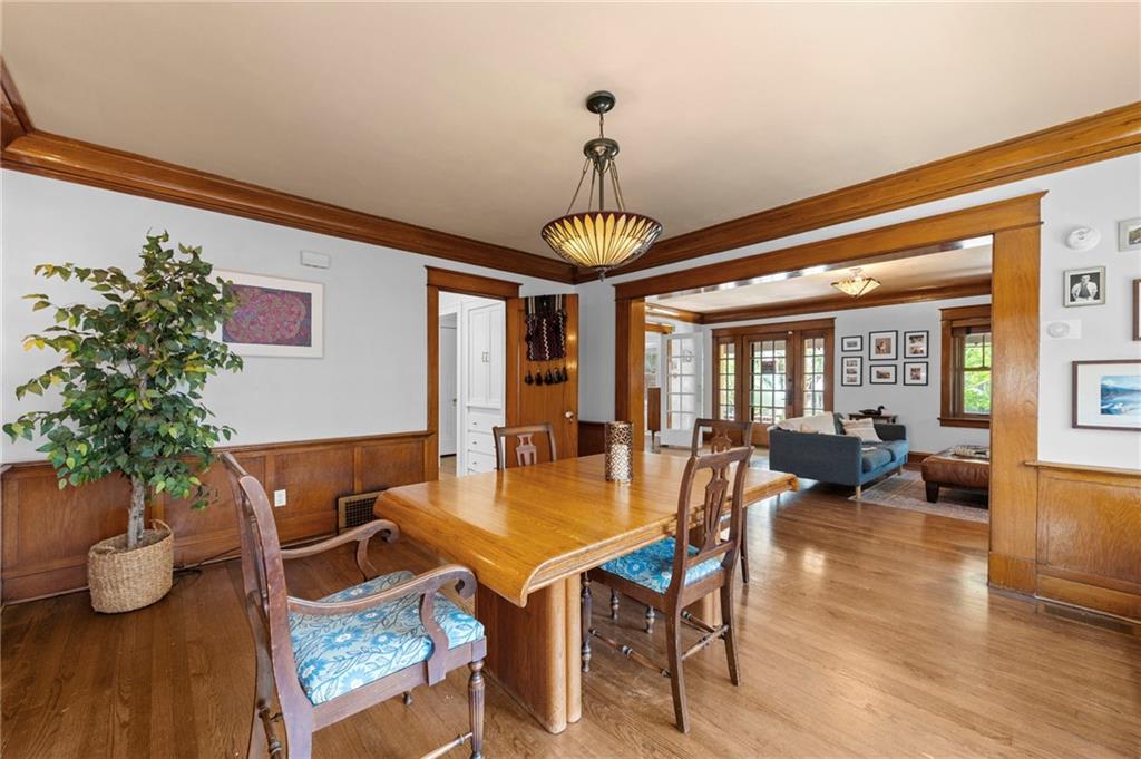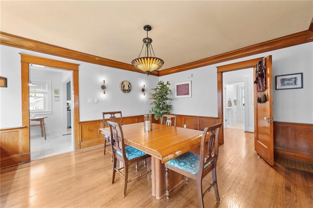 This traditional Brookside home is located on a desirable street with an inviting front porch and tons of charm! The living and dining rooms are generously sized for the area and feature original woodwork and built-ins and beautiful hardwoods throughout. Gorgeous Kitchen has been remodeled with high-end finishes, stainless appliances and features a breakfast room. New roof, newer HVAC, and Renewal by Andersen windows throughout. Large expandable unfinished attic offers significant opportunity to add square footage, including potential for a primary suite (stubbed for plumbing). Unfinished basement is super clean with high ceilings and egress windows. Private drive and one-car garage provide off-street parking. Convenient location with walkability to UMKC and Rockhurst, local restaurants (Earls' Premier is 1 block away), Crestwood and Brookside shops, and the Trolley trail.