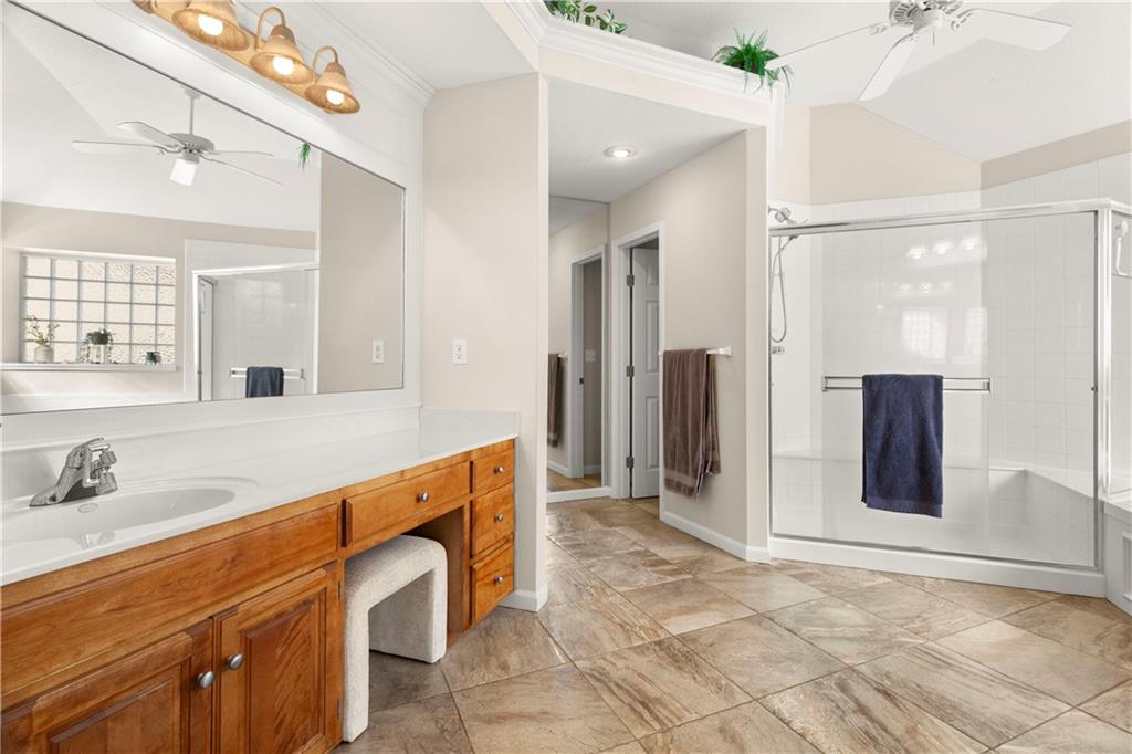 This is a true stunner in the coveted Paddock neighborhood, where pride of ownership shines throughout. You’ll immediately notice the abundance of natural light pouring in through oversized, newer (all replaced 2-3 years ago) windows. A spacious entry welcomes you and flows seamlessly into the main living areas. The well-appointed kitchen offers ample cabinet and counter space, a large island, walk-in pantry, and casual dining area. It opens to a cozy hearth room with a see-through gas fireplace shared with the adjoining family room—generously sized and highlighted by a bow window that maximizes natural light. The kitchen and family room overlook a gorgeous, fully fenced backyard—perfect for entertaining—with a 17x14 deck and matching sized patio pre-wired for a hot tub. A formal dining room with elegant trim adds versatility, while a half bath and spacious laundry room with built-in sink complete the main level. Upstairs, accessible by two staircases, you’ll find an inviting primary suite with a spacious bedroom and a well-appointed ensuite featuring double vanities, a whirlpool tub, and a truly impressive walk-in closet. Three additional bedrooms all include walk-in closets—one with a private bath, the others connected by a Jack-and-Jill. A bright loft with vaulted ceiling and skylight offers the perfect reading nook or flex space. The finished daylight basement includes a 5th non-conforming bedroom or office, along with high-quality finishes ideal for a theater or workout area. An attached bar space, plus room for a game table, a 4th full bath, and generous unfinished storage complete the lower level. Zoned HVAC adds efficiency, and the oversized 3-car garage easily accommodates a full-size truck. The carpets in the home were replaced about 2-3 years ago. There is also a battery back-up system on the sump pump.