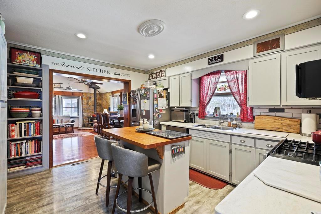 Escape to your own slice of the countryside with this charming 2 bed, 2 bath home nestled on 5.3 acres right outside of town on blacktop! Full of character and warmth, this property offers the perfect blend of comfort, space, and indoor-outdoor living. Step inside to find a cozy and inviting interior with timeless charm and nice flow. The living room has large windows and beautiful hardwood floors. The updated kitchen features shaker style cabinetry, solid surface countertops, and stainless appliances, as well as a cute center island. The dining room and den are spacious and inviting, showcasing wooden beams, a vaulted ceiling, a wood stove with a stone surround, and French doors overlooking the expansive yard to the back of the property. While outside, you’re sure to fall in love with everything this property has to offer. Enjoy quiet evenings relaxing on the well-appointed covered patio, spend summer days relaxing in the above-ground pool complete with a spacious surrounding deck, host gatherings that seamlessly transition from inside to outside, or take advantage of the small acreage which provides endless opportunities! Featuring ample gardening space for your green thumb, ground to farmstead or raise some animals, or just some room to roam your own property, these 5.3 acres offer options and privacy! With a 2-car detached garage, plus a small barn, and a garden shed, there is no shortage of room for all your tools, toys, or hobbies. Whether you’re looking for a quiet retreat, a hobby farm, or just more space to spread out, this property has it all. Don’t miss your chance to own this unique piece of country living!