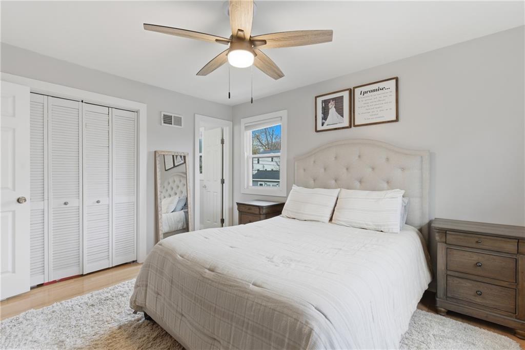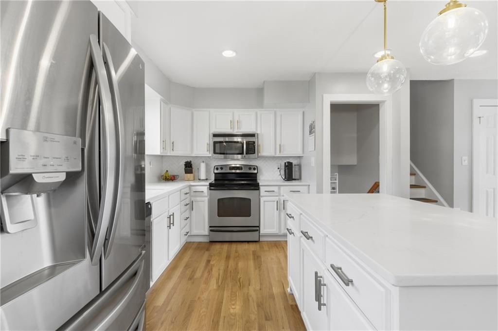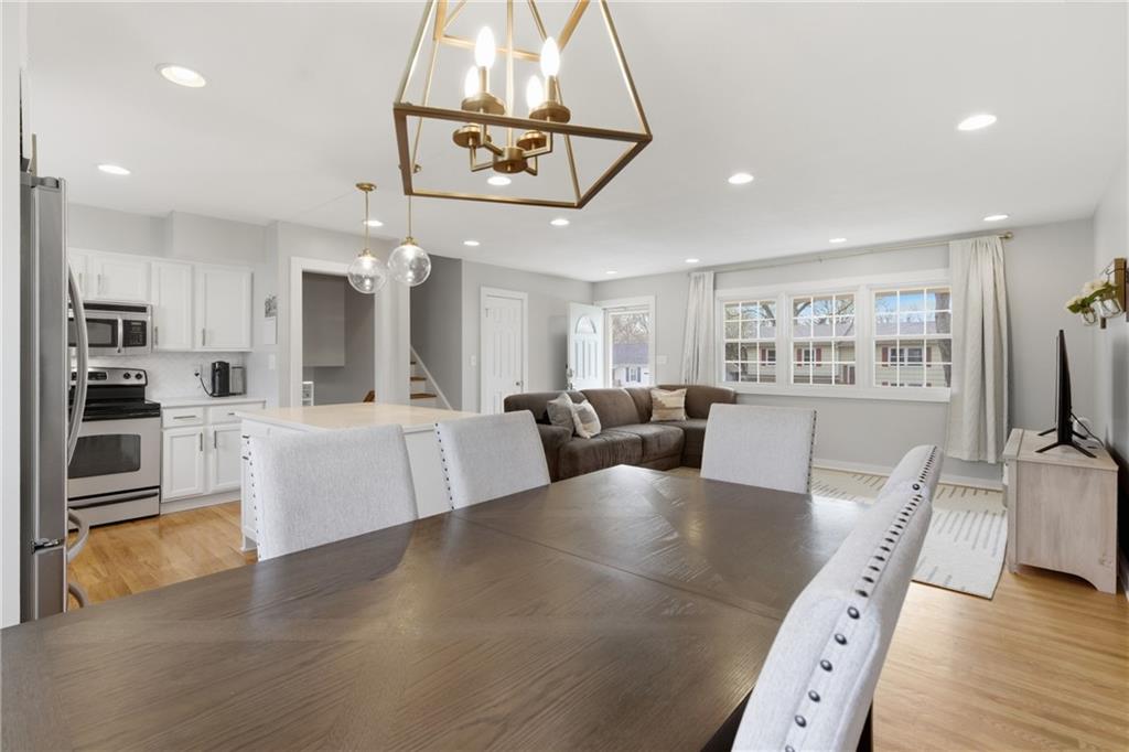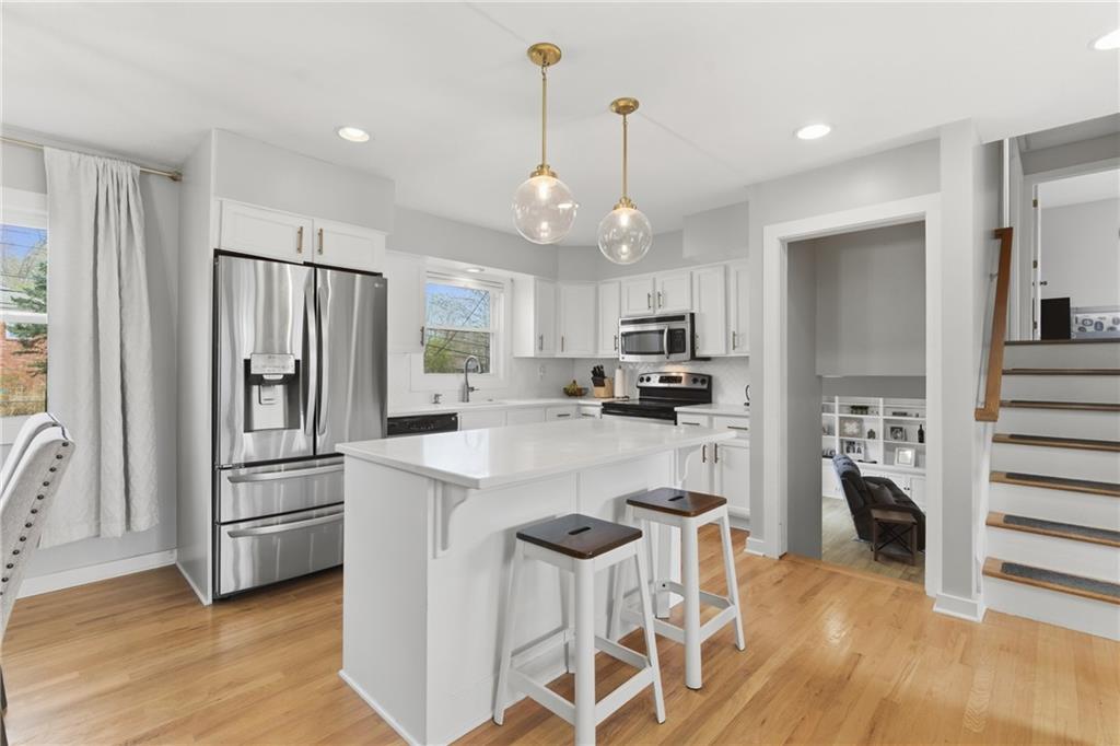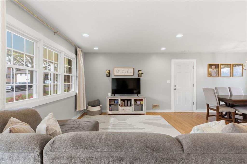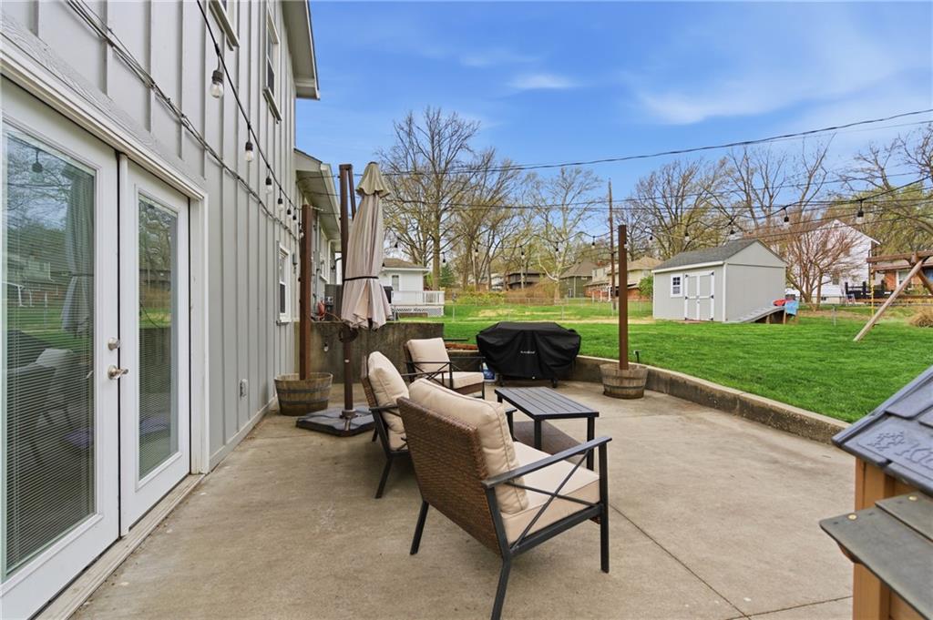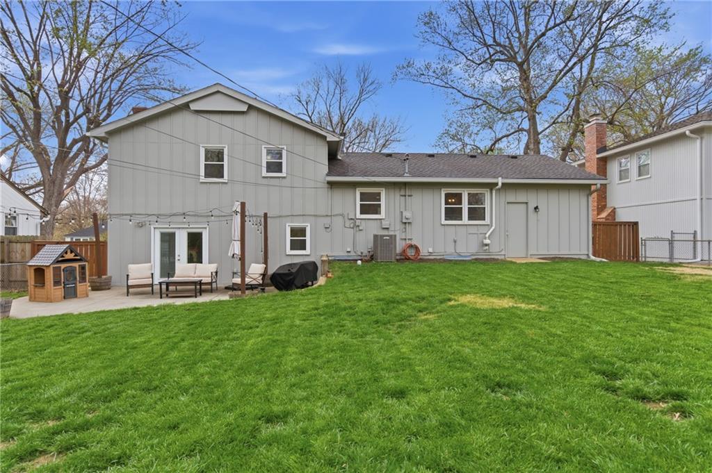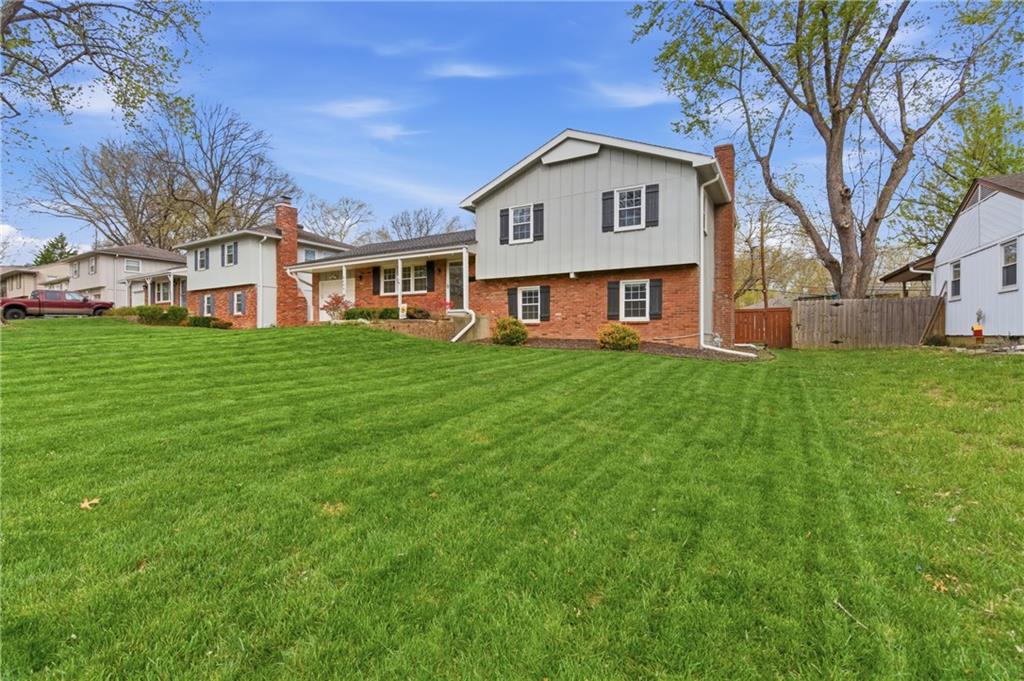 Stunning side-to-side split level home tucked into the beautiful Cherokee Hills neighborhood! The exterior facade gives “house proud” - beautifully landscaped and freshly painted. Step inside to modern open concept living with lovely oak floors and ample natural light to greet you. The modern kitchen showcases white cabinetry, stainless steel appliances and an eat-in island with Quartz countertops. Upstairs, you’ll find well-sized bedrooms, a beautifully updated hall bathroom, and linen storage. The primary bedroom ensuite features a shower-only bathroom with a new modern vanity. Downstairs, the perfect recreation room awaits you. Ready for game day, the space offers built-in cabinets, electric fireplace, ample seating for hosting, a half bathroom and plenty of space for the kids to play. The lower level recreation room walks out to a gorgeous backyard patio with the best vibe.The backyard offers a large shed, play set, and space to grill out under a cozy string light setting. Don’t miss the dedicated laundry, gym, office, and storage spaces available in the sub-basement! Lovingly cared for, this home includes 3 year old HVAC systems, a new sewer line, and radon mitigation. Appliances to stay for the Buyer’s ease! Nestled in the heart of Johnson County, this home offers modern living and surrounded by restaurants, shops, and schools at an unbeatable price tag!
