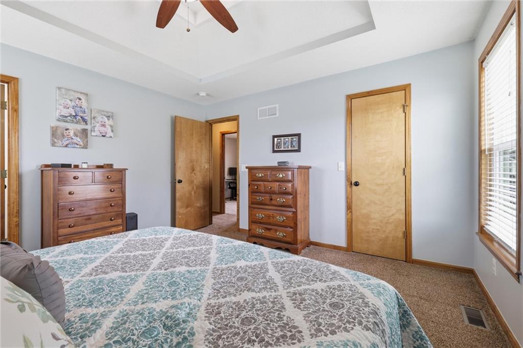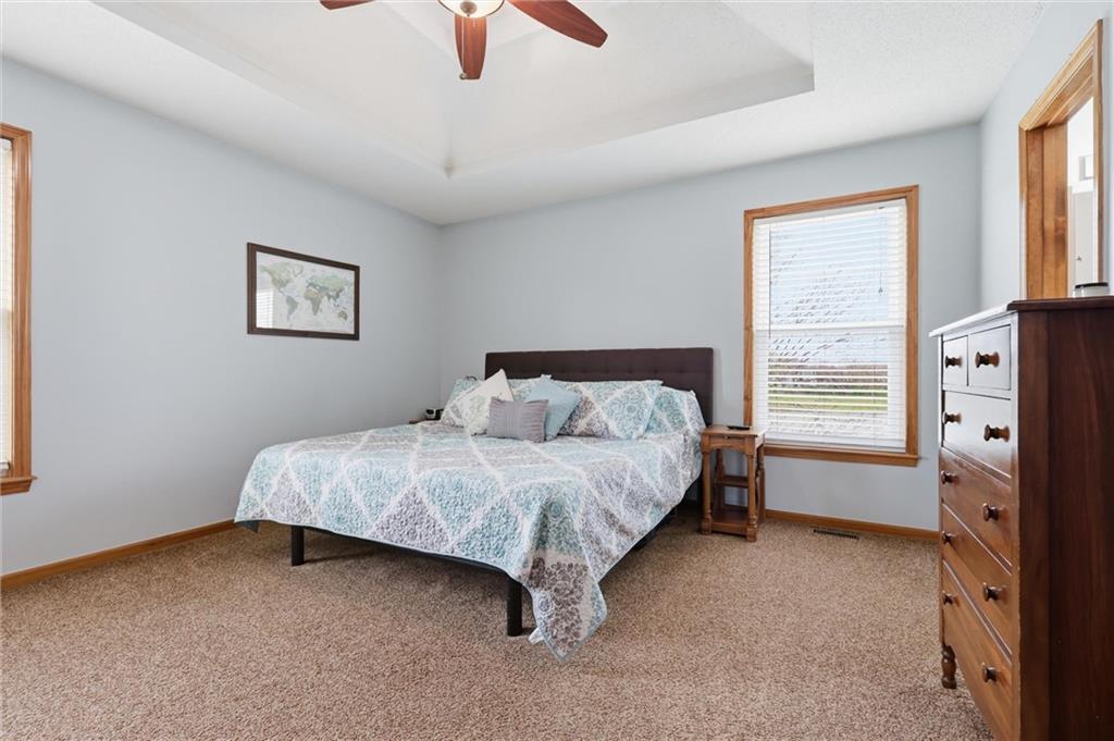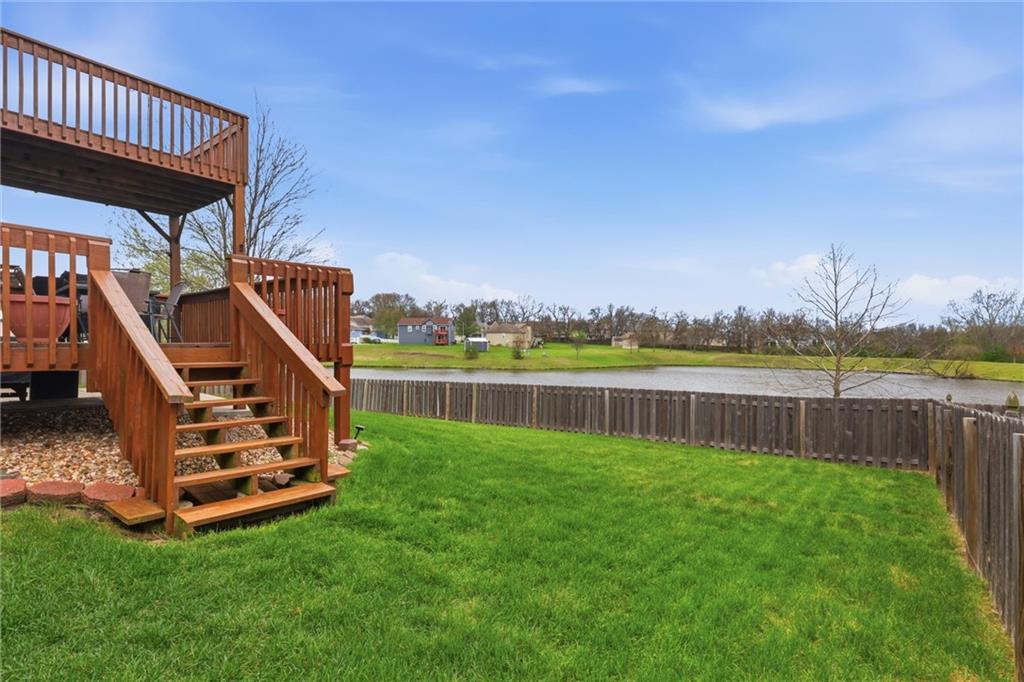 This beautifully maintained home is the definition of move-in ready, blending timeless style with thoughtful updates throughout. From the moment you arrive, you’ll appreciate the pride of ownership—inside and out. Featuring brand new windows with little worries about the big-ticket items, giving you peace of mind from day one. Step inside to warm, inviting spaces highlighted by hardwood floors in the kitchen and a soothing earth-tone palette that creates a true sense of home. The spacious primary suite offers two walk-in closets and a generously sized updated en-suite bath providing both comfort and functionality. Out back is where this property truly shines—enjoy peaceful views of the water from your covered deck, or relax on the two-tiered deck all overlooking the lake. It’s the perfect setting for both quiet mornings, beautiful sunsets, and entertaining evenings. The finished walk-out basement adds extra living space with a convenient half bath, while the deep garage with two openers offers plenty of room for storage. The beautifully landscaped yard with a privacy fence completes the package.