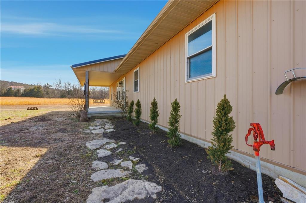 Welcome to tranquil country living on approximately 7± acres. Tucked toward the rear of the property, this spacious ranch-style home offers exceptional privacy and peaceful surroundings, accessed by a long private driveway. Boasting 2,400 square feet of well-planned living space, this 3-bedroom, 2-bath residence blends comfort, functionality, and quality craftsmanship throughout. Inside, you’ll find custom-built cabinetry and detailed baseboards that add warmth and character. The main level includes two generously sized bedrooms, a full bath, and a conveniently located laundry area designed for everyday ease. The finished basement extends the living space with an additional bedroom, full bath, and a large family room—ideal for entertaining, accommodating guests, or creating a cozy retreat. It also features a spacious storm shelter and a second laundry hookup for added convenience and flexibility. Constructed with durable metal siding and a metal roof, this home is built for longevity and low-maintenance living. The oversized, insulated attached garage offers an impressive 1,200 square feet—perfect for multiple vehicles, a workshop, hobbies, or additional storage. Enjoy relaxing on the covered front porch overlooking the expansive yard, or unwind on the composite back deck with scenic views of a mature tree line. Near the back of the property, a pond has already been excavated and is ready to be filled, providing a unique opportunity to create your own private water feature. Whether you’re looking for space to spread out, room to grow, or a peaceful place to call home, this remarkable property offers the perfect balance of privacy, comfort, and potential.