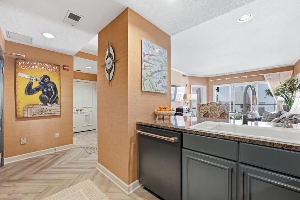 Welcome to this beautifully updated one-bedroom condominium in the highly desirable Plaza Pavilion, where comfort, style, and location come together seamlessly. Nestled in a quiet neighborhood with lush landscaping, this home offers unbeatable proximity to Loose Park and the Country Club Plaza—perfect for enjoying Kansas City’s best shopping, dining, and outdoor spaces. Inside, you’ll find a thoughtfully upgraded interior featuring elegant crown moldings and designer finishes throughout. The living space flows effortlessly into a well-appointed kitchen outfitted with premium Café appliances, offering both functionality and modern appeal. The bedroom is a true retreat, highlighted by a stunning chandelier (included with the sale) and custom drapery from The Shade Store. The fully renovated bathroom showcases a sophisticated design with a walk-in shower, large-format porcelain tile, Kohler fixtures, a quartz countertop, and a rare 18th-century French 1st Empire sink cabinet—blending historic charm with contemporary luxury. Additional upgrades include a Samsung washer and dryer, grass cloth wall coverings, and a Beam central vacuum system for added convenience. Residents of Plaza Pavilion enjoy a welcoming community atmosphere, secure enclosed parking, and a pet-friendly policy with no weight restrictions. A second parking space is available for lease at $100 per month. This is a rare opportunity to own a stylish, move-in-ready condo in one of Kansas City’s most sought-after locations.