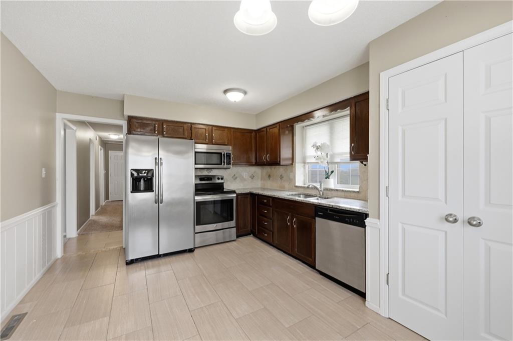 This beautiful move in ready home is ready for it's new owner's! Ceramic tile entryway. Kitchen features granite counters w SS/appliances, mosaic tile backsplash, spacious pantry & ceramic tile flooring. KITCHEN APPLIANCES STAY. Great room has new carpet. paint, vaulted ceilings & fireplace. LL family room has fireplace & half bath. White vinyl privacy fence w shed in back yard