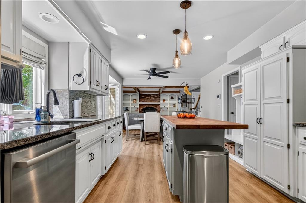 BEAUTIFUL two-story home in the heart of Lenexa offers the perfect blend of space, functionality, and flexibility. The main level welcomes you with an open-concept layout featuring a spacious living room, wall of windows with abundant natural light, and a seamless flow into the family room with fireplace and well-appointed kitchen featuring stainless appliances, pantry, backsplash, gas stove, wood island and granite counters—ideal for both everyday living and entertaining. Upstairs, you’ll find generously sized bedrooms, including a comfortable primary suite with a private bath that includes a soaker tub, double vanity and dual walk in closets. Three additional bedrooms provide versatility for family, guests, or a home office. The fully finished basement adds exceptional value with its own private living quarters—perfect for extended family, guests, or potential rental income. This separate space includes a bedroom, full bathroom, living area with fireplace, full kitchen, dining area and washer/dryer hookup offering both privacy and independence. With its thoughtful layout and multi-generational living potential, this home is designed to meet a variety of lifestyle needs while maintaining comfort and style throughout. Fully fenced yard with trees for privacy and a deck for entertaining. Close to the Lenexa City Center offering a variety of dining and entertainment.