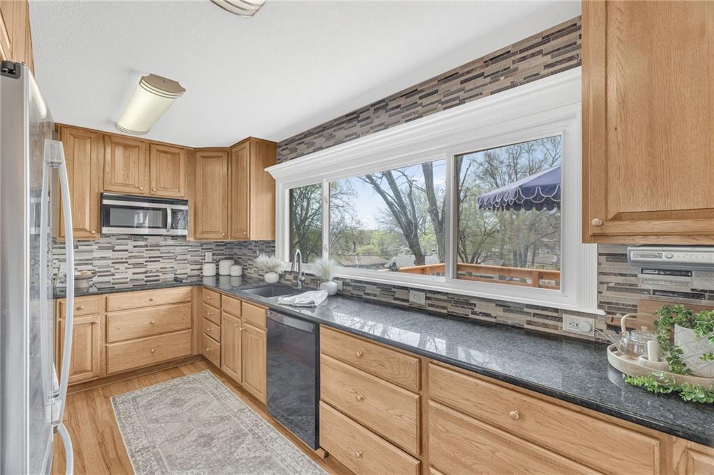 This meticulously maintained, move-in ready home truly has it all! Step outside to enjoy the new deck—complete with weather-protected storage space beneath—overlooking a spacious backyard with beautiful, mature landscaping. Inside, you’ll find thoughtful updates throughout, including new appliances, updated bathrooms, granite countertops, and hardwood floors that run seamlessly throughout the home. New front windows bring in an abundance of natural light, enhancing the bright and welcoming feel. The home features 3 bedrooms and 2.5 bathrooms, along with the convenience of main-floor laundry. The primary suite offers plenty of natural light and a private en suite bath for your own retreat. Downstairs, the walk-out basement provides incredible versatility with a bonus family room, half bath and ample storage space. From the moment you arrive, the curb appeal stands out—and the location is just as impressive, with easy highway access and close proximity to Red Bridge Shopping Center.