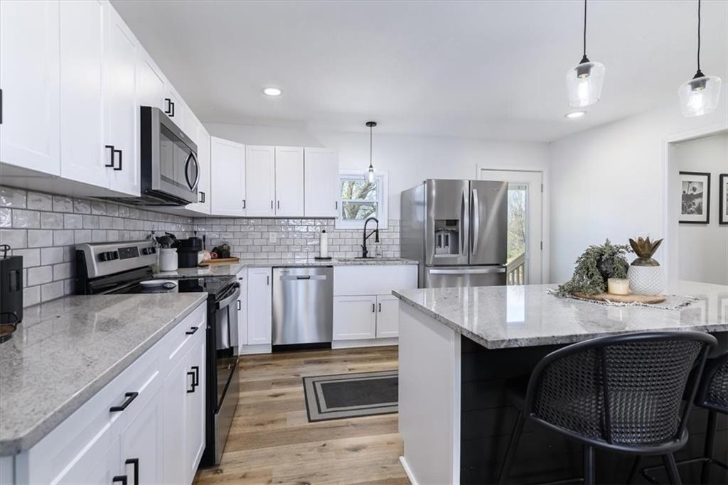 WOW.. this one is a stunner! Right north of Leavenworth on a paved road you will find this STUNNING newly remodeled from TOP to BOTTOM. This 3 bed 2 bath home sits in the Easton School District on a gorgeous 1.5 acre piece of countryside! Step Inside where you will find an open floor plan offering tons of natural light with beautiful finishes to include luxury vinyl plank flooring throughout, granite countertops, eye catching white cabinets and stunning island in the kitchen. Enjoy the oversized master suite with an attached master bathroom and walk-in closet. 2 generous sized additional bedrooms offer additional space for the kids or a guest room for hosting. Downstairs you will find a blank slate to add additional living space.. the options are ENDLESS. Come outside to where you be greeted with a large concrete patio for grilling and hosting events and a 40x30 shop with two garage doors for all your storage and working needs! Total remodel was completed in 2024, HVAC, ROOF, SEPTIC are all new in 2024 and shop and additional driveway were added in 2024. This home offers all the new build perks without the price tag of a new home! You are going to want to come visit this home today and see what living in the country feels like, just in time for the summer!