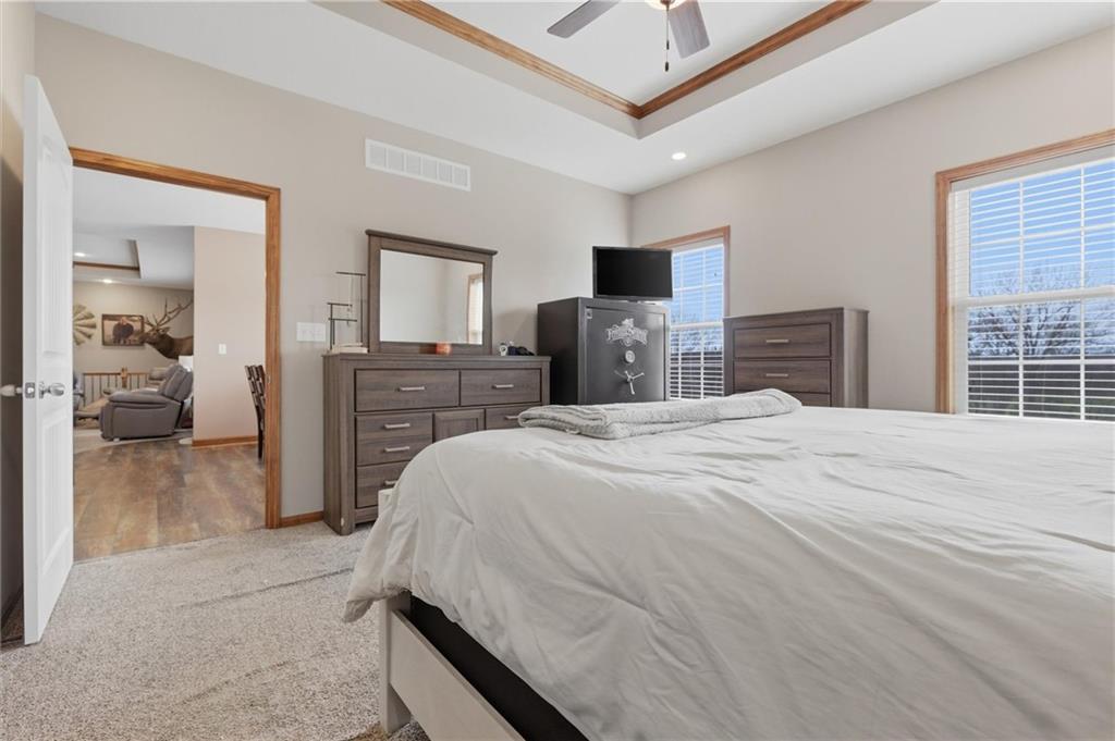 4-bedroom, 3-bath home offering over 3,700 sq ft of living space on 5 acres m/l—your own private escape with room to breathe. Kitchen features granite countertops, ample cabinetry, and an oversized walk-in pantry, designed for both everyday living and entertaining. A fantastic primary suite adds comfort and functionality to the well-designed layout. The full walkout basement expands your living space with a second kitchen, large recreation or second living area, and a potential fifth bedroom—ideal for guests, multi-generational living, or added flexibility. Step outside to a partially covered cedar deck overlooking beautiful wide-open views, or take advantage of the impressive 30x50 outbuilding featuring blown foam insulation, ample electrical service, and HVAC for year-round use. A covered patio off the outbuilding adds even more space for relaxing or entertaining. If you’ve been looking for space, functionality, and a peaceful setting, this one checks the boxes