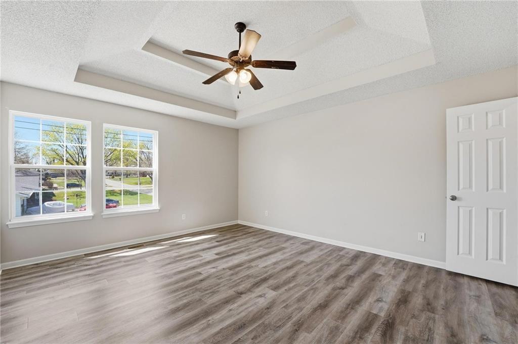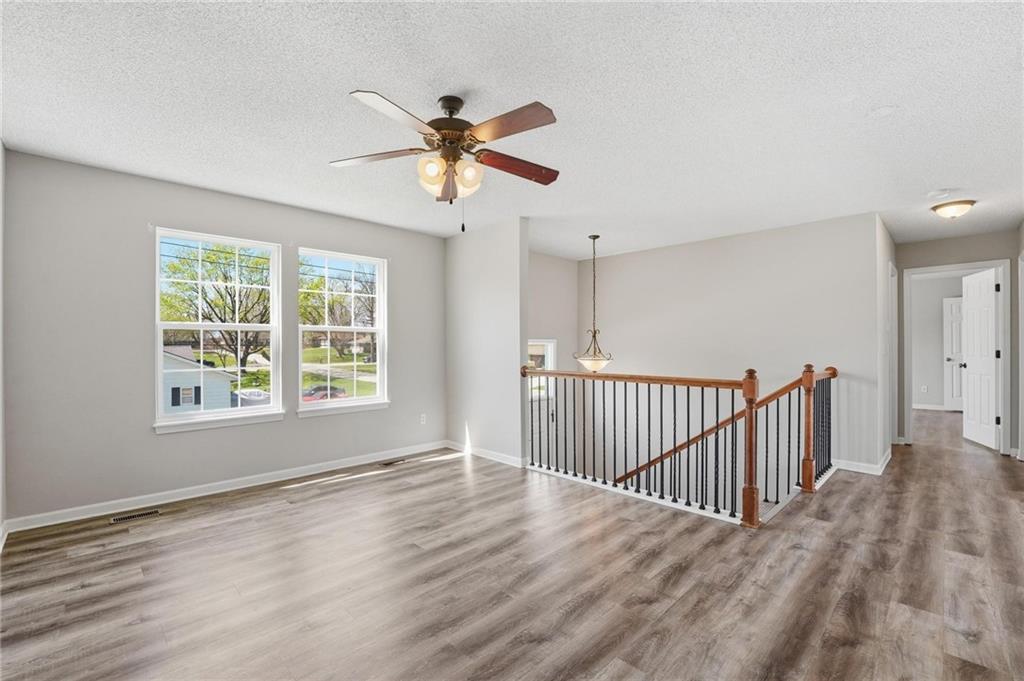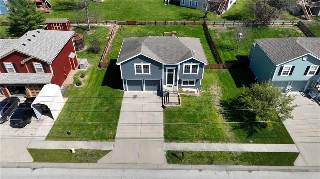 Well-maintained split-level home located in Kearney School District, offering 3 bedrooms and 2 full bathrooms with a functional and inviting layout. The main living area features updated flooring, abundant natural light, and an open flow into the eat-in kitchen, creating an ideal setting for everyday living and entertaining. The kitchen includes ample cabinetry, storage, with convenient access to the deck and backyard. The primary bedroom offers comfortable space along with a walk-in closet, while two additional bedrooms provide flexibility for family, guests, or a home office. The finished lower level includes a third bedroom and a full bathroom, perfect for added privacy or multi-generational living, along with a utility and laundry area. Step outside to enjoy the fenced backyard, ideal for pets, play, or outdoor gatherings, along with an elevated deck overlooking the yard. Additional highlights include a two-car garage and a newer water heater for added peace of mind.