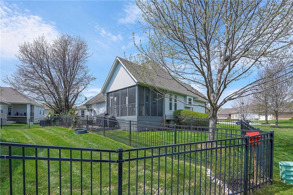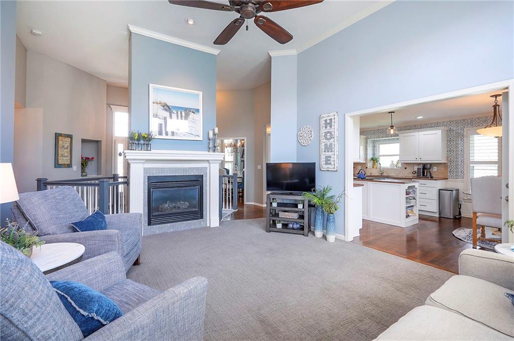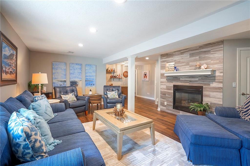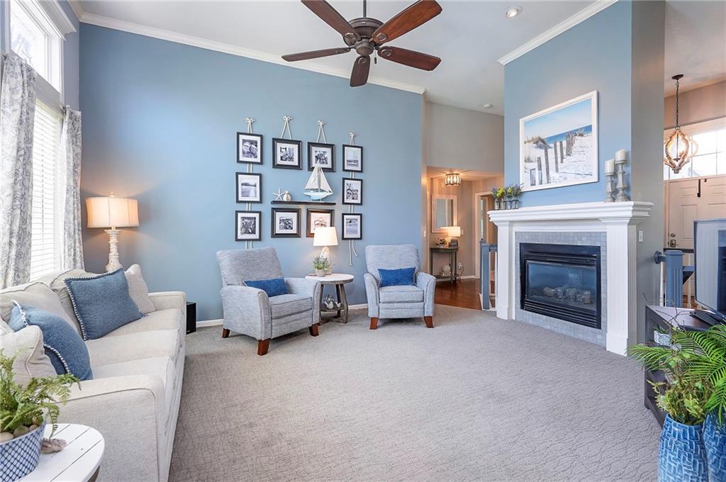 A Welcoming free-standing Villa located on a cul-de-sac, adjacent to walking trails and green belt. This meticulously maintained villa has a unique floorplan with 2 Fireplaces, Formal DR, first floor Utilities and a Master Bdrm and Bdrm 2 on first floor. The Lower Level has a charming Family Room (2nd Frpl), the 3rd Bdrm /3rd full Bath and loads of storage (Notice the Nook/Closet beside the FRPL). The Kitchen has Eating Space, an Island, Custom Cabinets and a newer 2024 Induction Range. The Entry and Great Room have 12' ceilings, the Dining Room has a 11' vaulted ceiling. There is a freshly painted and rescreened porch leading to a patio with new brick pavers. The Roof was replaced in 2024 by Century Roofing. The newer windows by Window World have a transferable warranty for a $50 transfer fee. All three bathrooms have been renovated. The Master Closet has a Closet Organization System. New bedroom carpet on first floor and new LVP in LL Family Rm and Bedroom. See the Specifics on attachment to SD. The yard has a sprinkler system maintained by the Homeowner but the HOA does start up and winterize. There is Landscape Lighting Front and Back.