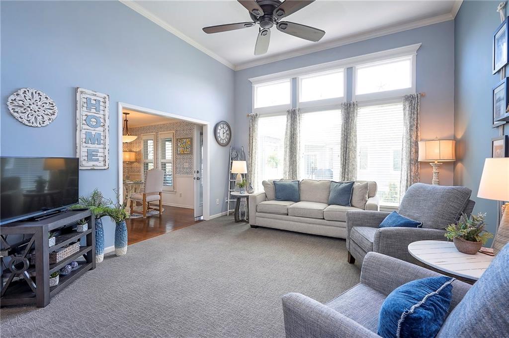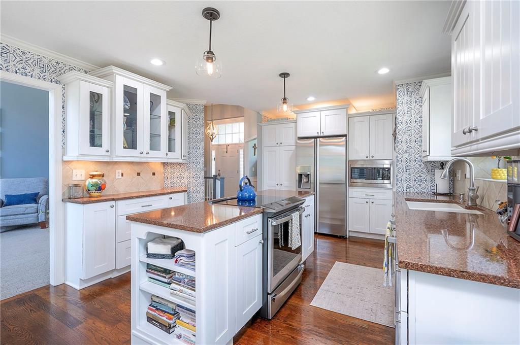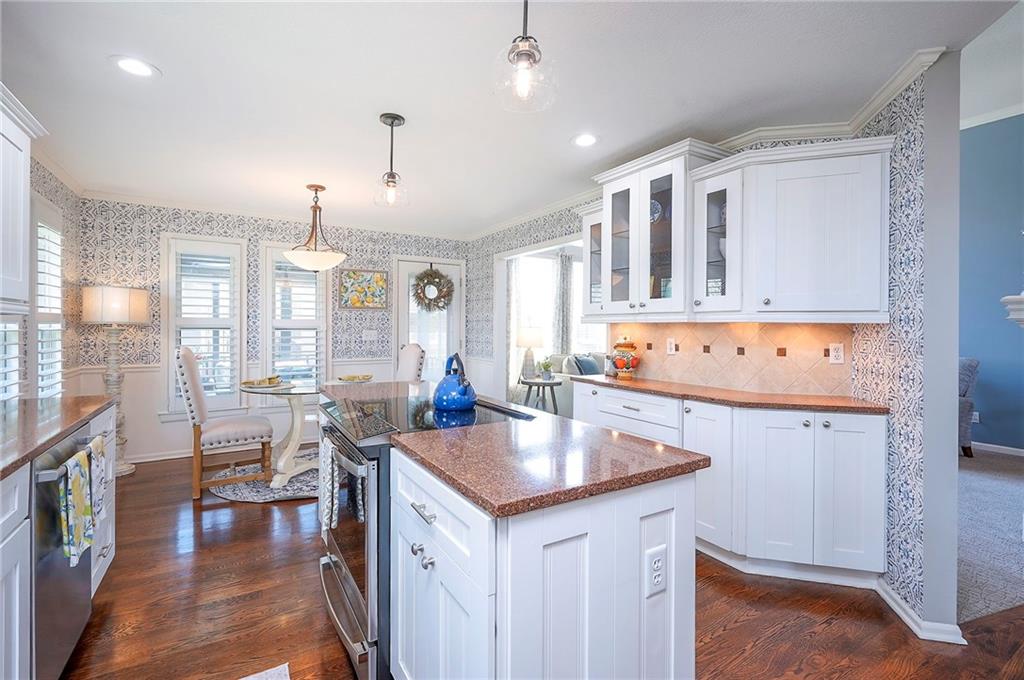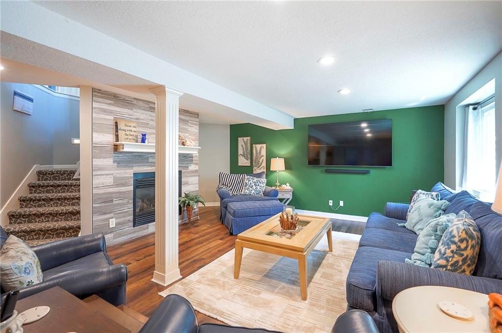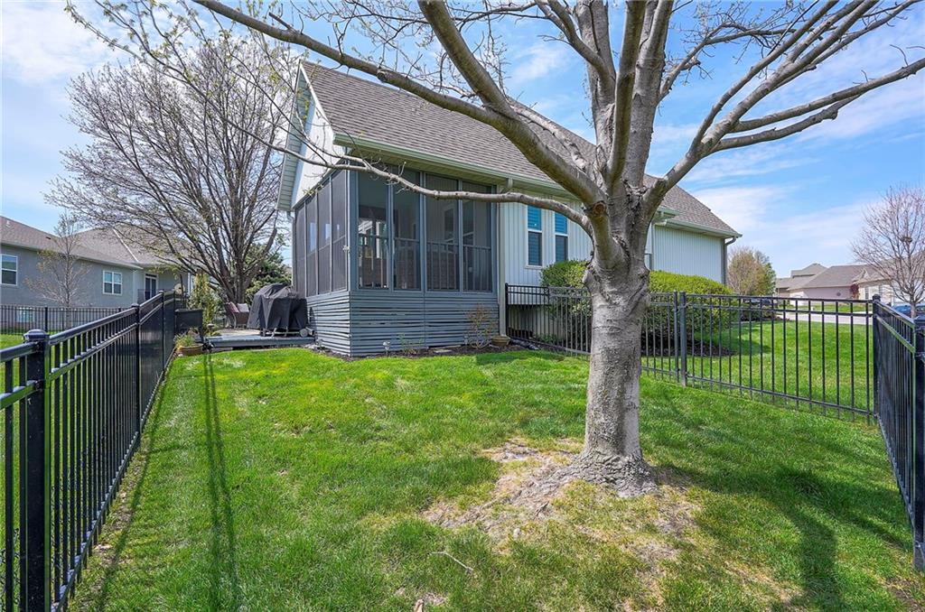 A Welcoming free-standing Villa located on a cul-de-sac, adjacent to walking trails and green belt. This meticulously maintained villa has a unique floorplan with 2 Fireplaces, Formal DR, first floor Utilities and a Master Bdrm and Bdrm 2 on first floor. The Lower Level has a charming Family Room (2nd Frpl), the 3rd Bdrm /3rd full Bath and loads of storage (Notice the Nook/Closet beside the FRPL). The Kitchen has Eating Space, an Island, Custom Cabinets and a newer 2024 Induction Range. The Entry and Great Room have 12' ceilings, the Dining Room has a 11' vaulted ceiling. There is a freshly painted and rescreened porch leading to a patio with new brick pavers. The Roof was replaced in 2024 by Century Roofing. The newer windows by Window World have a transferable warranty for a $50 transfer fee. All three bathrooms have been renovated. The Master Closet has a Closet Organization System. New bedroom carpet on first floor and new LVP in LL Family Rm and Bedroom. See the Specifics on attachment to SD. The yard has a sprinkler system maintained by the Homeowner but the HOA does start up and winterize. There is Landscape Lighting Front and Back.