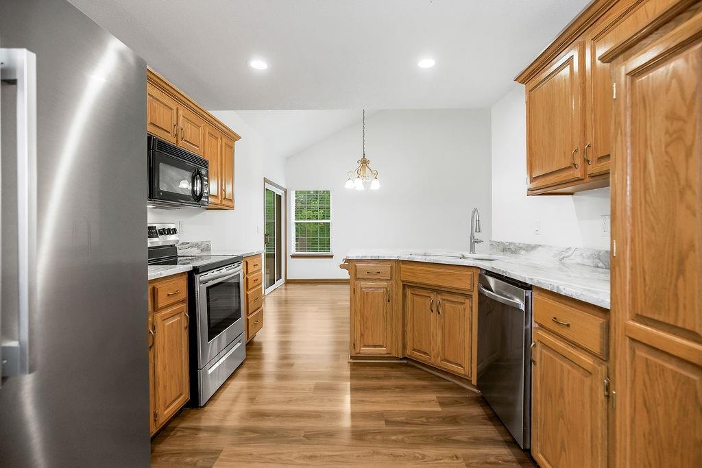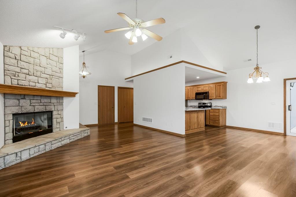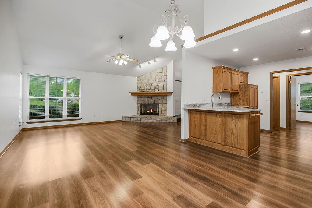 Welcome home to this super clean, beautiful and spacious open concept home located on a quiet cul-de-sac in Odessa. This home boasts 3 beds, 2 baths, new quartz counter tops, new paint, vaulted ceiling and has a large deck with fenced backyard. This property features a bright and open floor plan with abundant natural light throughout. Great lot size, so you don't have to worry about living right on top of your neighbors. Easy walk to Chestnut Park and quick access to I-70 Hwy and 20 minutes from Blue Springs. All appliances stay!