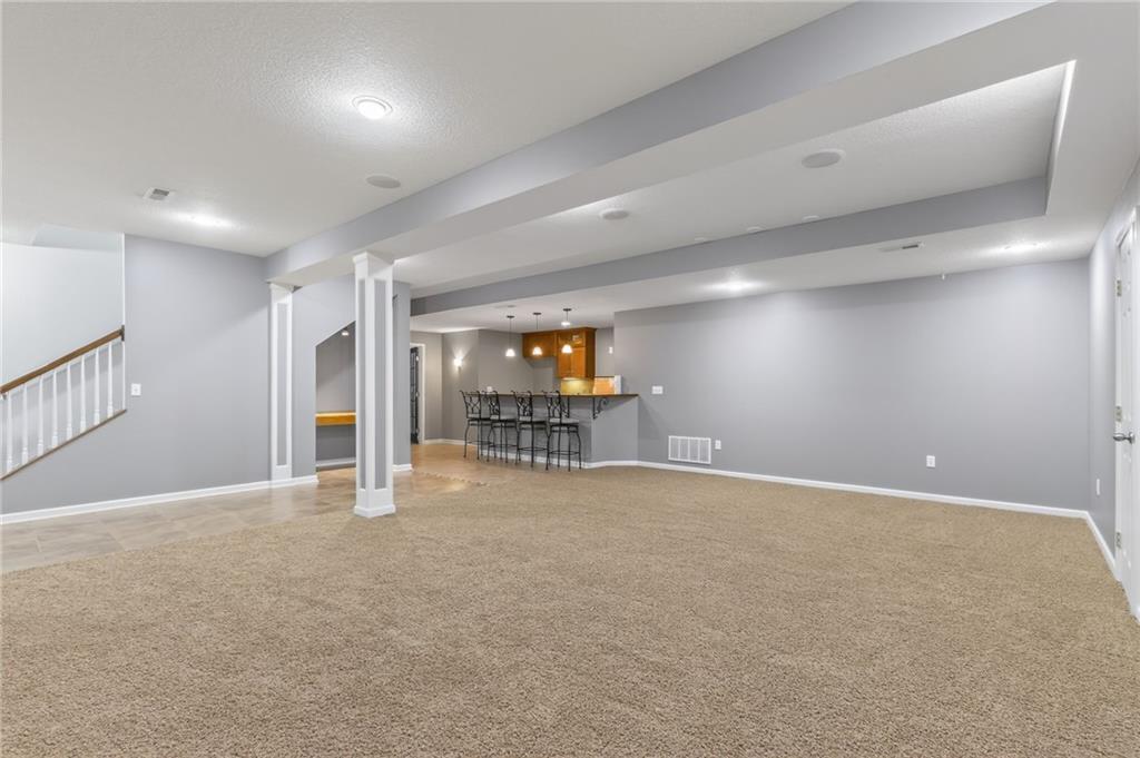 This beautifully maintained home offers the perfect blend of space, comfort, and convenience with 5 bedrooms, 3.5 bathrooms, and 3,973 square feet. The primary suite is a standout feature, complete with a spacious ensuite bath and a large walk-in closet that conveniently connects to the laundry area—making everyday routines effortless. Enjoy an abundance of natural light throughout the main and upper levels, creating a bright and inviting atmosphere. The finished basement is ideal for entertaining or multi-generational living, featuring a home theater area, wet bar, full bathroom, 5th bedroom, and a walk-in cedar closet. Located in a sought-after community with tennis courts, swimming pools, and lakes for catch-and-release fishing, this home also offers easy access to highways, shopping, dining, and more—all within the Liberty School District in Kansas City, Missouri.