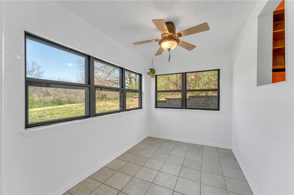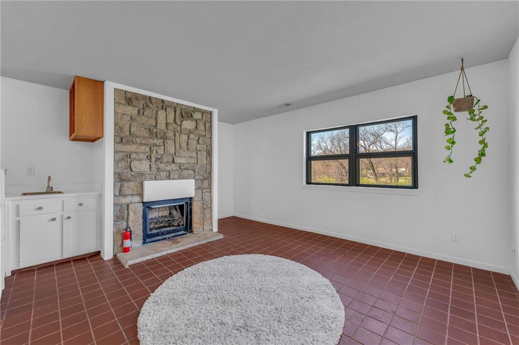 Located a short distance west of KU in the desirable West Meadows Condominiums complex is this 2-bedroom, 2-bathroom condo. Conveniently located on the bus route, this property is nicely tucked back in the northernmost building in the complex. A COVERED parking space is included with this offering. Stainless steel appliances included, plus the washer and dryer. The living area has tiled floors and a stone fireplace. The sunroom has tile floors and offers an abundance of natural light. Primary suite with attached bathroom.HOA covers exterior building(studs out) maintenance, lawn care, snow removal, and access to the swimming pool. You keep your insurance costs low as you only need to insure from the walls in (studs in)!