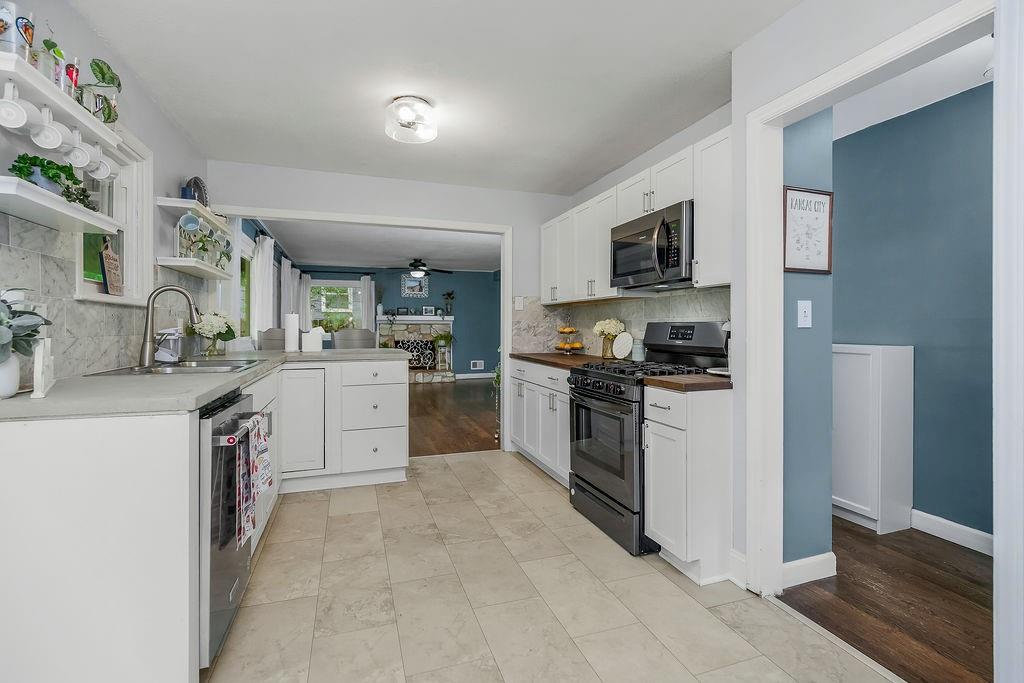 Gorgeous, updated mid-century gem in Waldo! This charming home features a living room with gleaming hardwoods and a cedar closet right at the entry. You'll also find a cozy family room down a few steps with a fireplace and stylish shiplap accents. The bright white kitchen is a showstopper with a gas range, Carrara marble backsplash, LVP flooring, and butcher block and concrete countertops. New fixtures throughout give the home a fresh, modern feel. Right off the kitchen is a convenient half bath. You’ll love the gleaming walnut hardwood floors, spacious bedrooms, and an updated full bath with tile flooring. Custom built-ins for tons of storage! Lower level unfinished with laundry. New gutters and A/C! Fenced yard with a covered patio for enjoying the seasons. All of this in an unbeatable location—just steps from the Trolley Trail, walking distance to South Oak Park, and minutes from shopping, dining, and the vibrant Waldo entertainment district. This one checks all the boxes—come see it before it’s gone!
